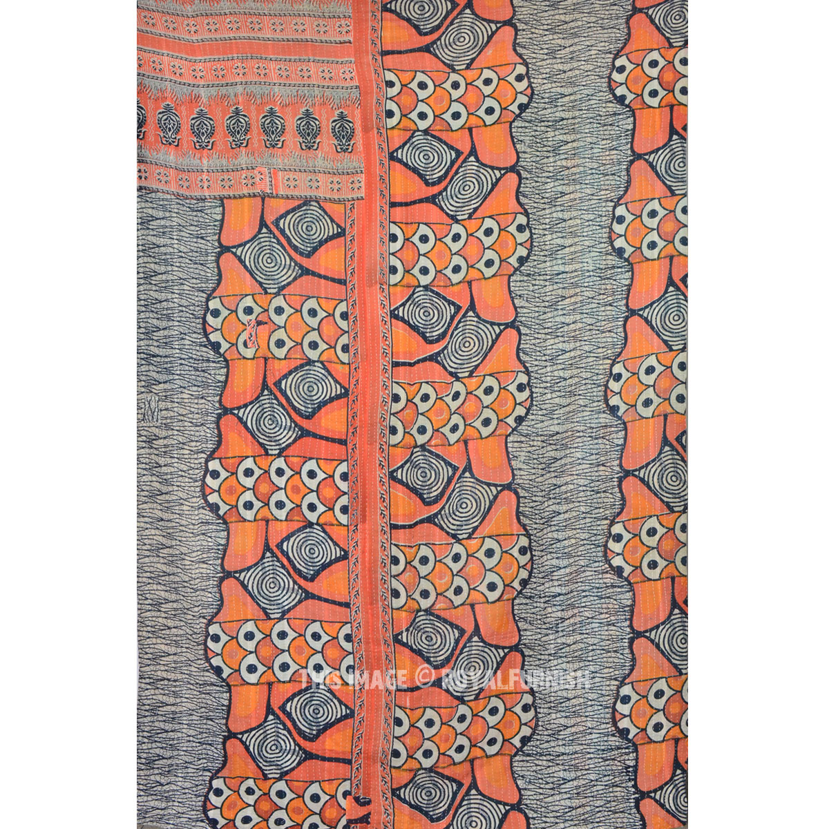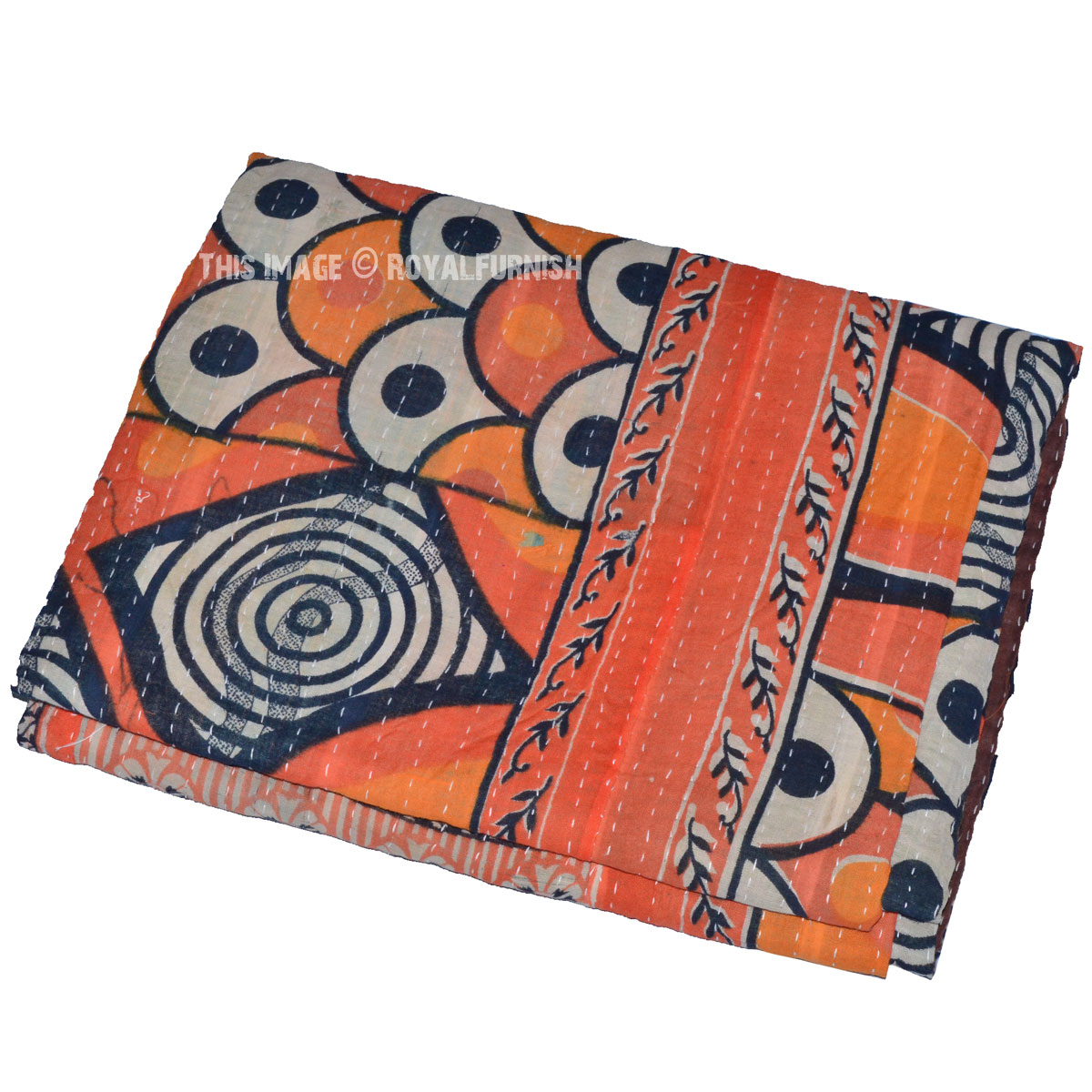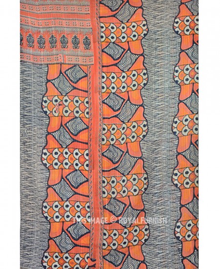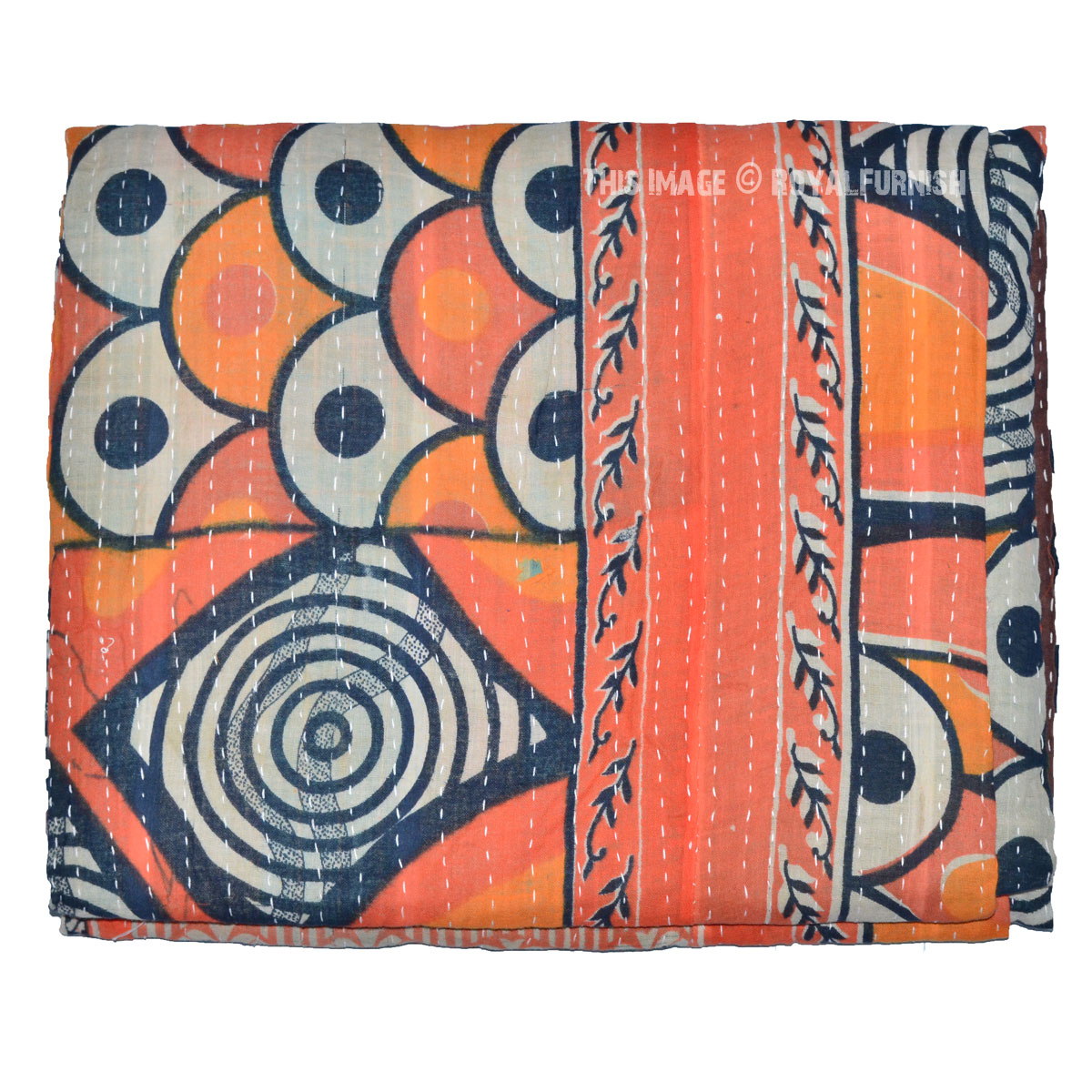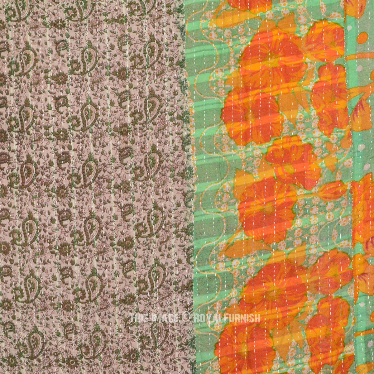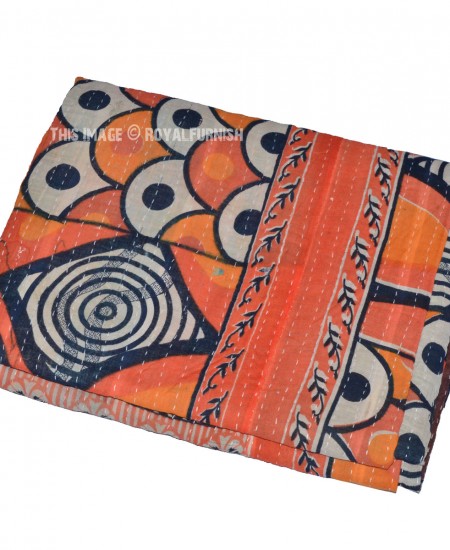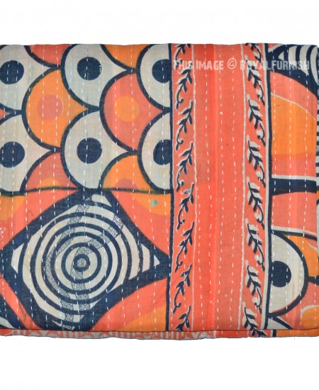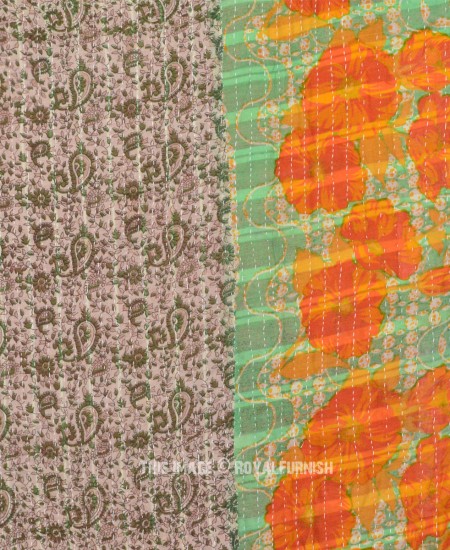 Decor your bedroom with one of a kind vintage Kantha quilt sari throw. It comes from west Bangal (India) and made with patches of Calcutta traditional sari. The different layers are stitched together which makes it beautiful throw and sustain a vintage look. The positive aspect of Kantha throw is reversible so can be used from both of side. It is very comfortable and soothing and unique piece of art which will give a rich look to your bed room.It is called Kantha Gudari and Ralli in India. It can also be used as sofa throw in winter season to feel soft, warm and cozy.
