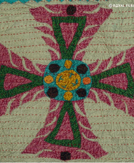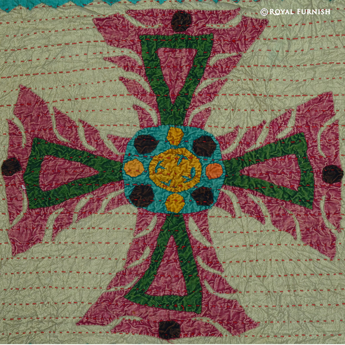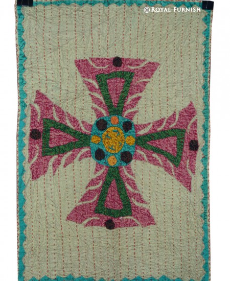 Decorate any room with handmade patchwork embroidered knight templar tapestry and give a true extension of your home. It is antique & unique piece of art which fills a wall and leave a big impression in dramatic way. A symbol of knight templar is designed on vintage cotton thick fabric with old fabrics patches and these patches stitched together perfectly with kantha art work. It gives such elegant touch to the whole look when you hang it on wall.
