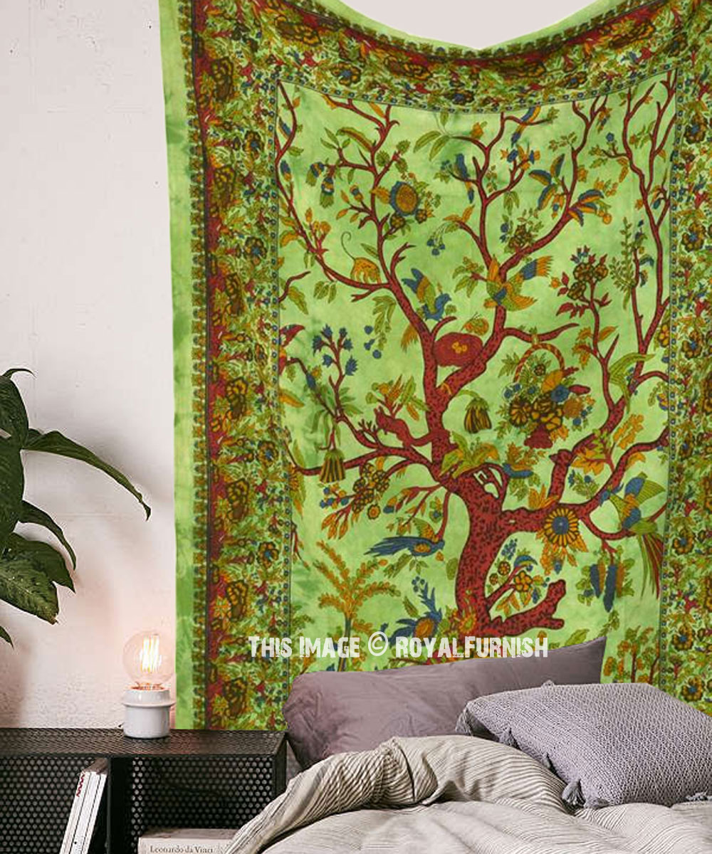 Green Twin Tree Of Life Wall Decor Fabric Tapestry Wall Hanging Art