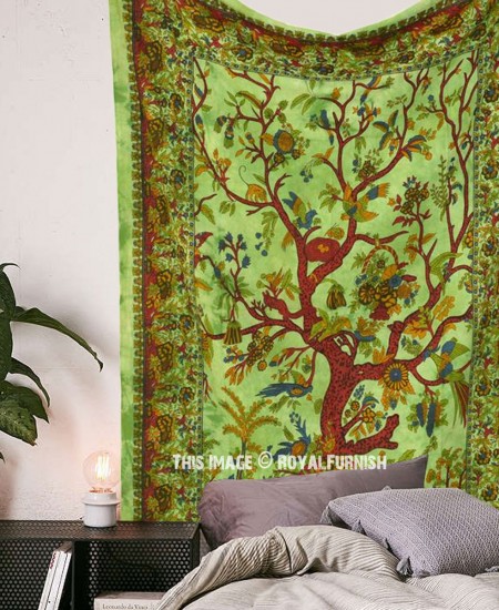 We've reached with distinctive, very reasonably priced assortment of attractive tree of life print lightweighted thin cotton tapestry wall hanging which fits with any kind of budget, each beautifully constructed from 100% cotton in India. The tapestry is finished with bordered edges. It adorns any room be it dorm or living room/bedroom. It also contains one additional element it can be used as a tree bedspread, wall hanging, table cover, sofa throw etc.