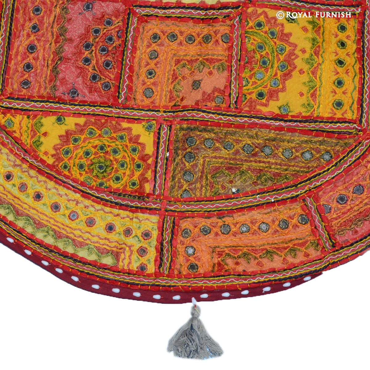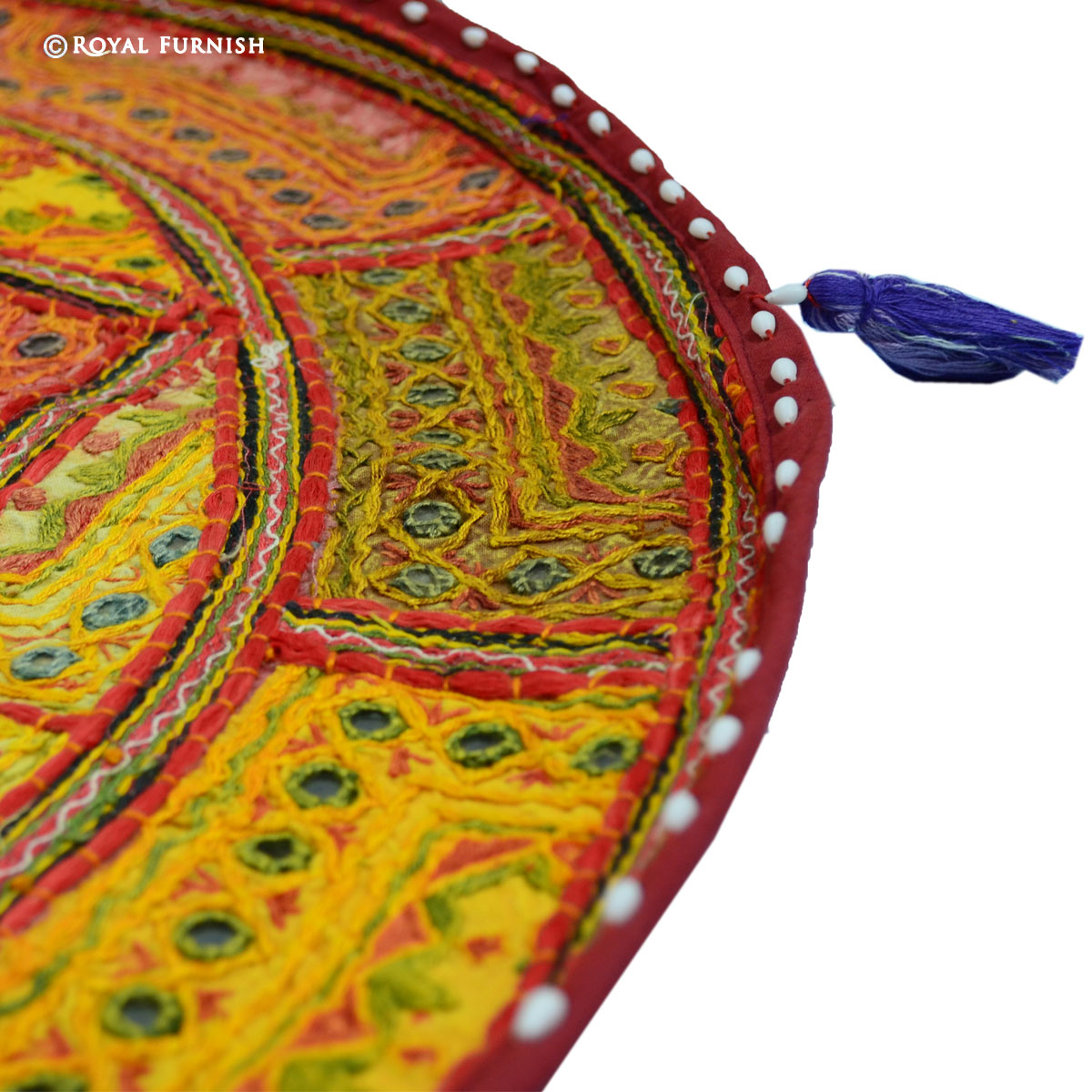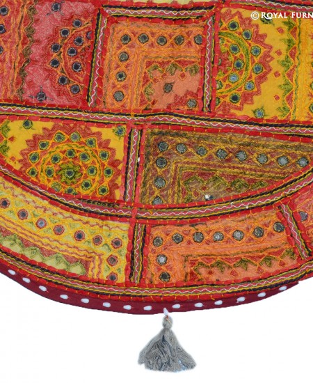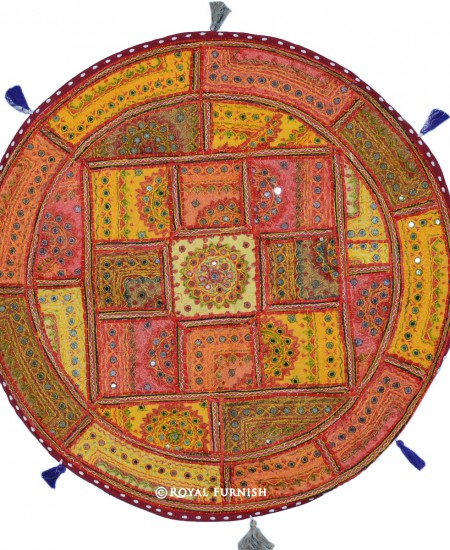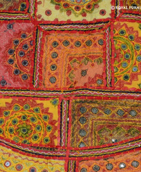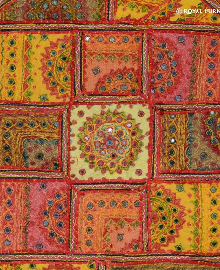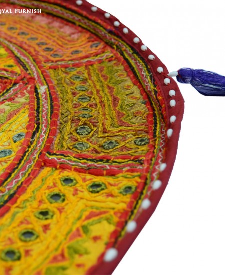 Mirror embroidered floor pillow which fits with living room and bed room and very easy to carry one to next room. It is a perfect example of Indian handmade mirror embroidery art work where small mirrors are fixed on cotton fabric with extensive threads embroidery work. These fabrics are altered in small patches and thereafter all patches are sewn together with elaborate threads. It is time taking art work which engage artist for long hours to give a perfect design to floor pillow cover. It is multipurpose item which can be used for floor seating, yoga pillow or outdoor floor pillow. As it is 100% handmade art work so it is rarely found anywhere. You can easily fill it by self at home with raw cotton/polystyrene beans/shredded foam.