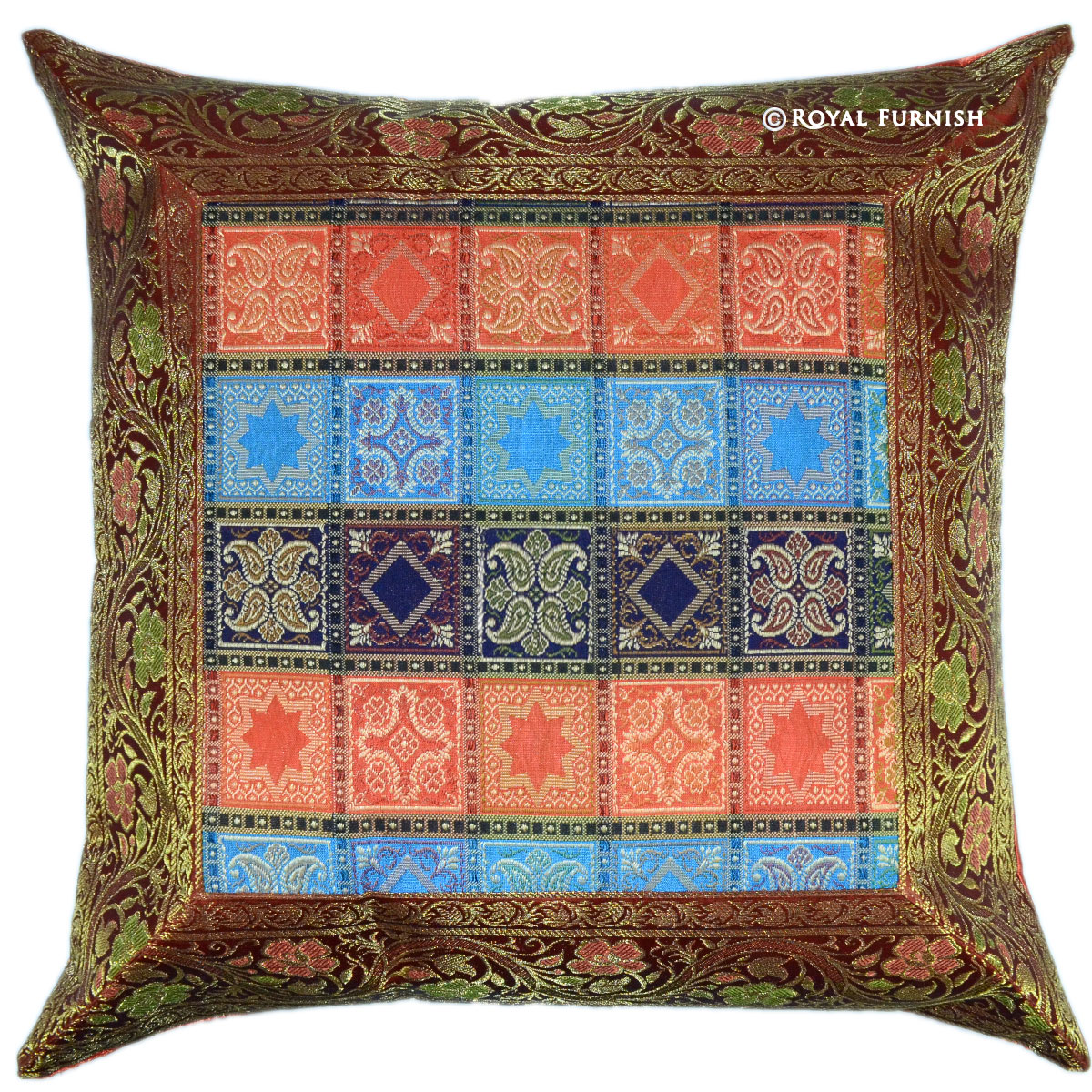 With its sleeky and shimmery surface and brocade pattern, Royal Furnish's silk brocade pillow serve as a visual and textural expression of opulence and luxury at very cheap price.It is 100% made in India from beginning to end. The sophisticated square India silk brocade offer a perfect accent to your home furniture chair, sofa, bed. The Silk brocade pillow completes the warm look of the bedding.