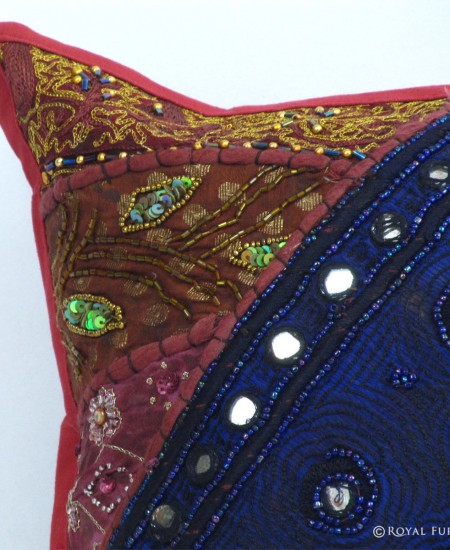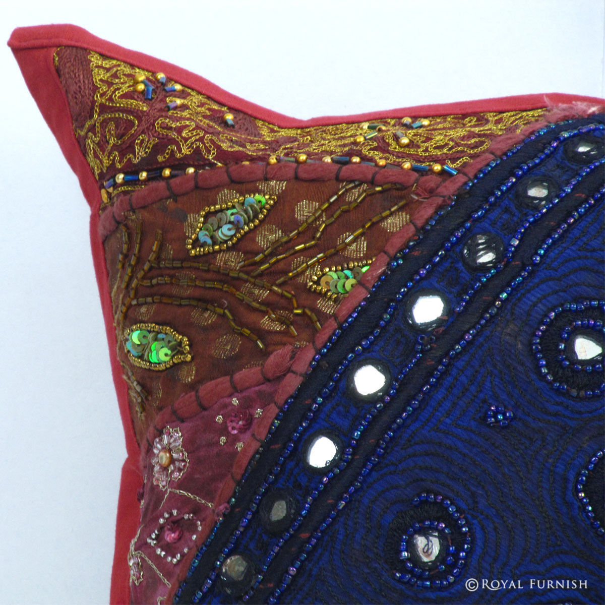 Heavy Beaded Indian Patchwork Decorative Throw Pillow
