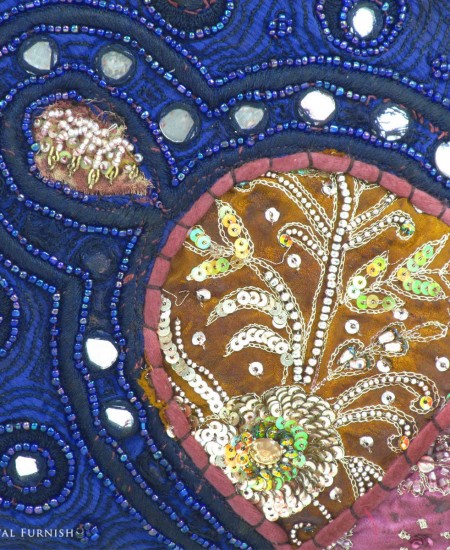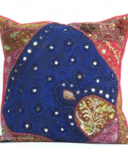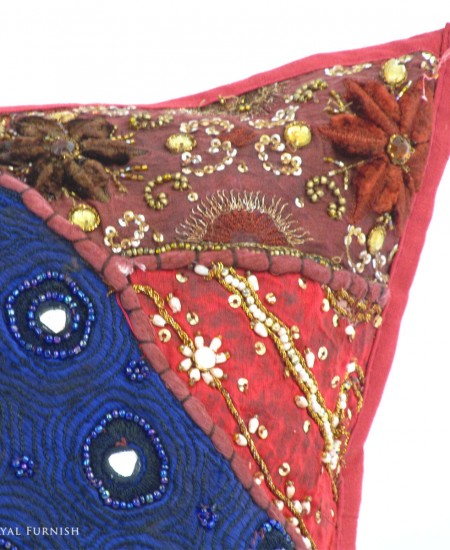 Add glitz and glamour with Indian vintage flair look to your home with intericate India hanmade patchwork beaded throw pillow. The beautiful decorative pillow features exquisitely detailed heavy bead work with cotton backing. It is a perfect accent for a sofa or chair, or a great way to add a playful touch to your bedding ensemble.