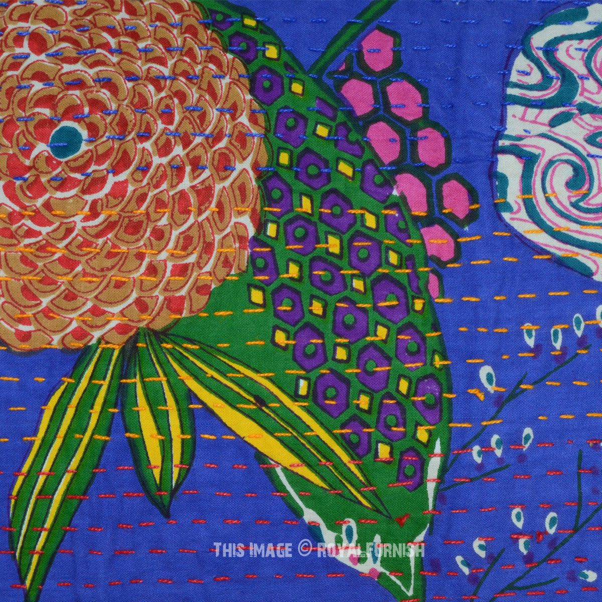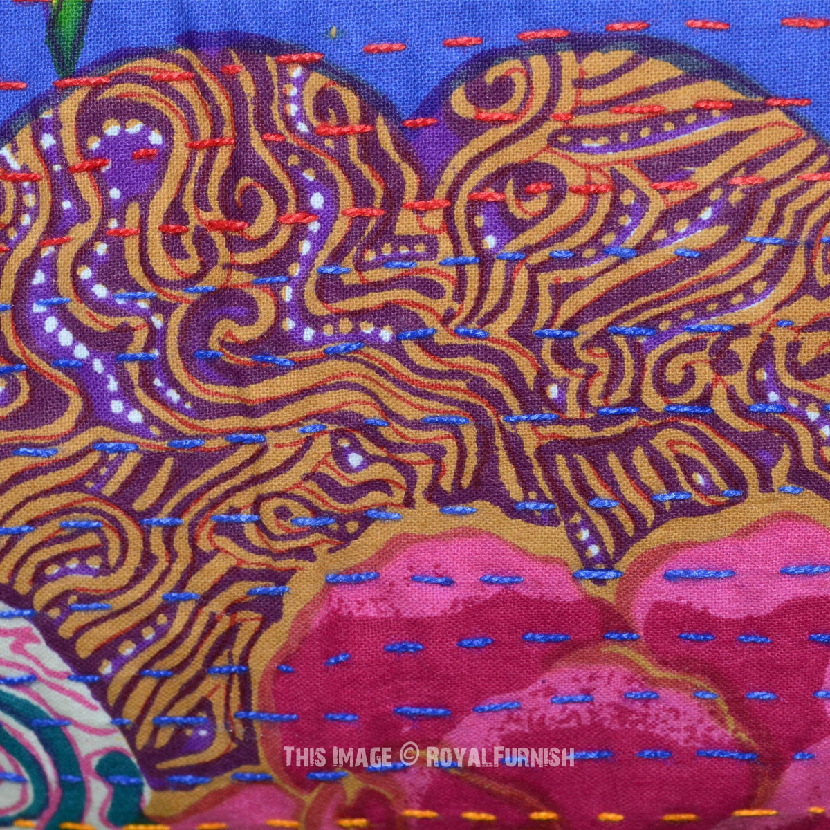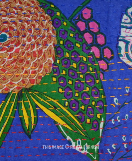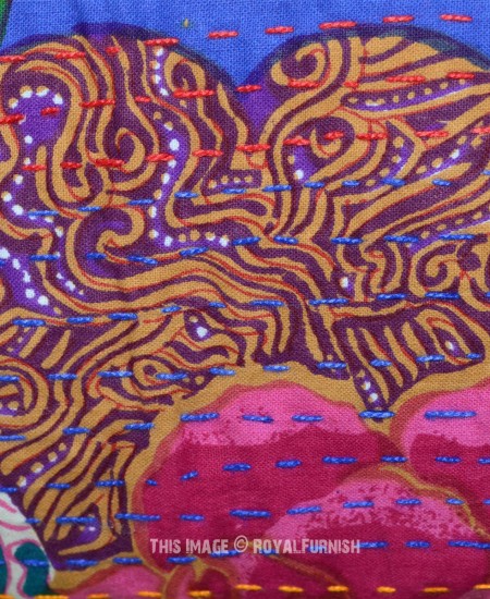 Design home space with vibrant floral torpicana kantha throw pillow which can transform an entire room's interior. It is made with straight hand stitching kantha work on cotton fabric which delivers bold color statement. It is made in India (rural area) from beginning to end. It comes into different colors, designs and type. This kantha pillow features birds on tree theme.