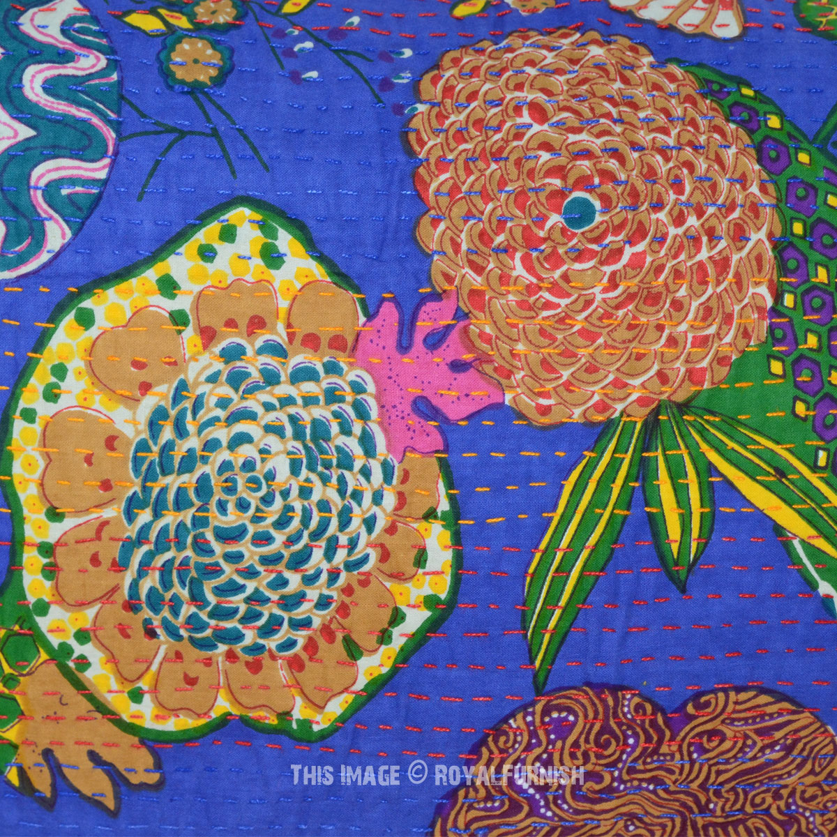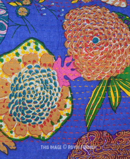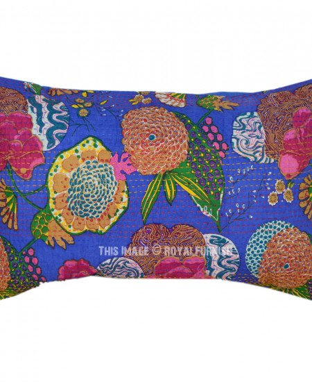 71"X45" Blue Outdoor/Indoor Indian Boho Chic Style Floral Kantha Throw Pillow Sham