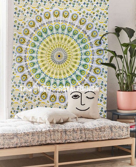 Add a distinctive touch to your bedroom space by hanging Indian floral mandala printed hippie tapestry. Constructed from 100% cotton, this tapestry is high in quality, durable and skin friendly. One special feature that this tapestry wall hanging boasts of is the excellent colourfastness that allows tapestry not to fade away even after repeated usage and wash. The elegant colours used in this wall hanging/bedspread will match your bedroom decor. The charming floral and striped designs add to the beauty of this tapestry. The tapestry is multipurpose item can be used as wall hanging, bed cover, table cover, college dorm room wall hanging etc. The tapestry can be used into college dorm & bedroom.