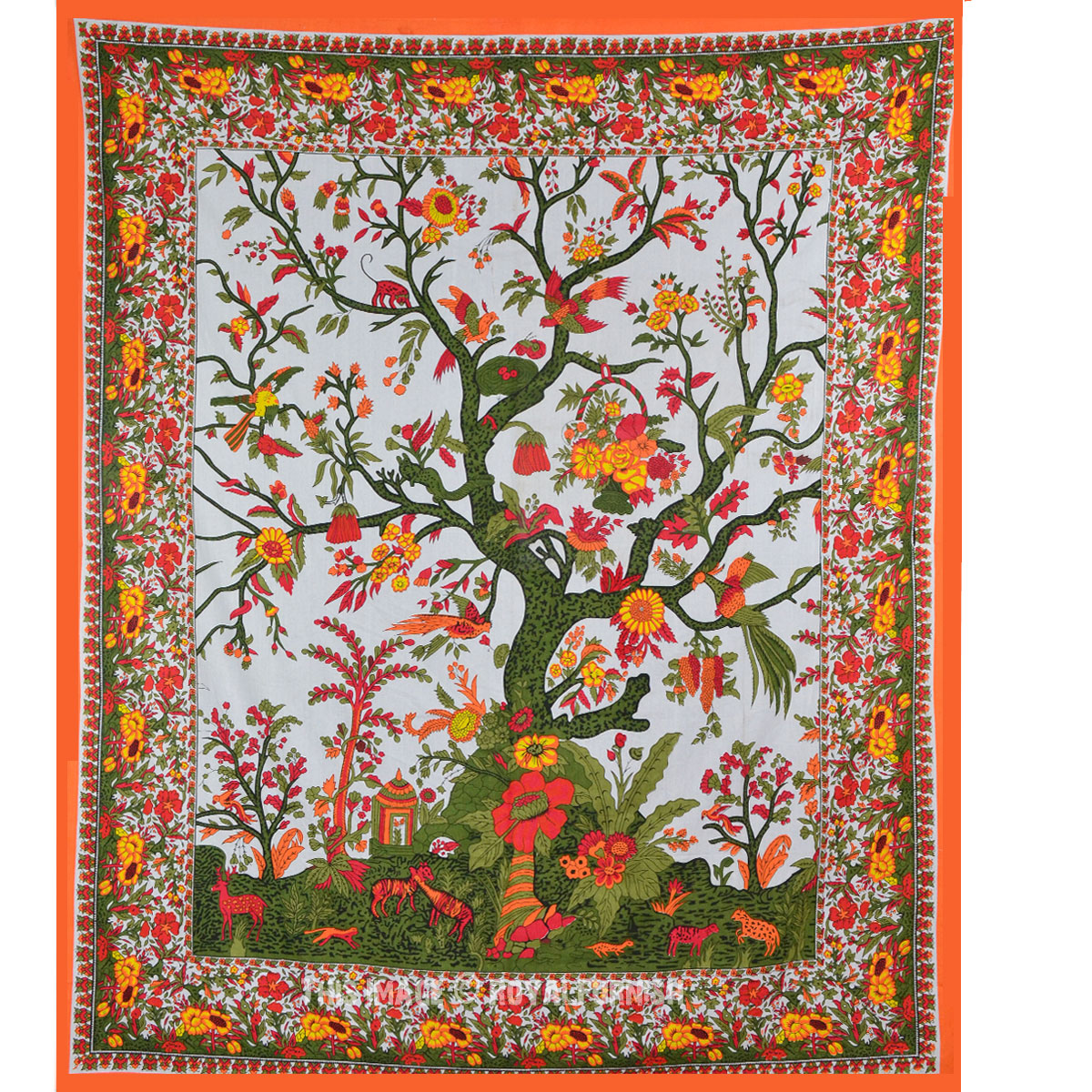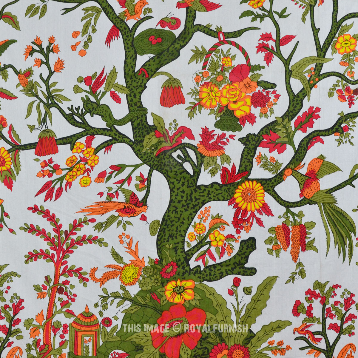 Queen White Colorful Tree of Life Tapestry Wall Hanging Bedspread Bedding