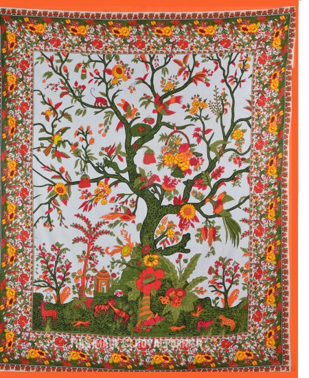 Tapestries are great idea to instant makeover to any room and remove dull ambiance and give revive look to the home interior. Beautiful Indian tree of life cotton tapestry wall hanging gives a royal touch to your home interior. The tapestry features a tree, birds, brich design into vibrant colors.