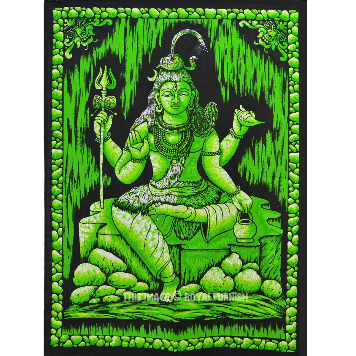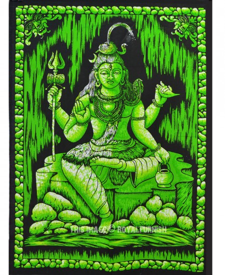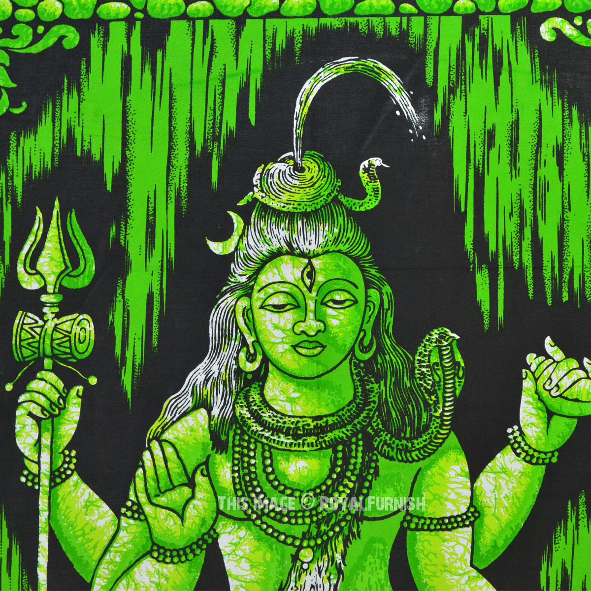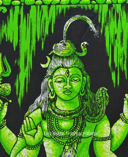 Green Hindu Lord Shiva Fabric Cloth Poster Wall Hanging
