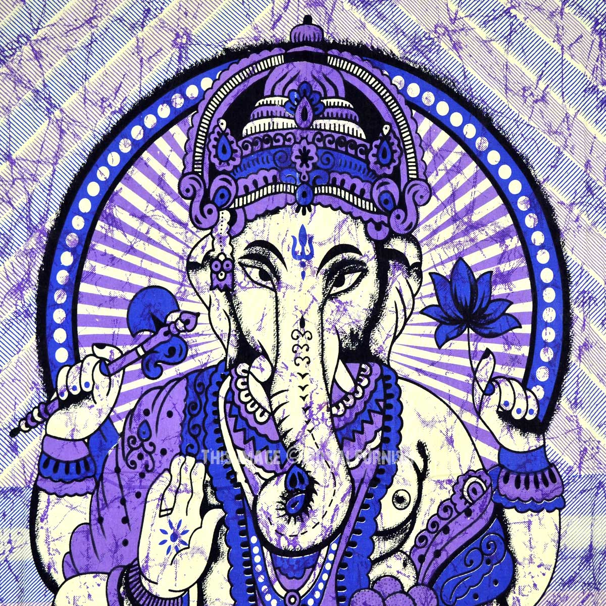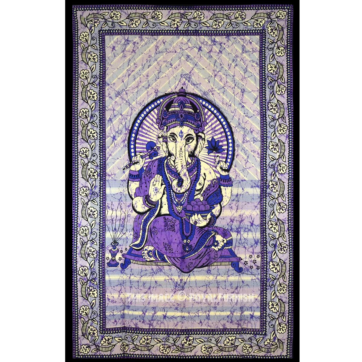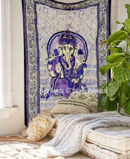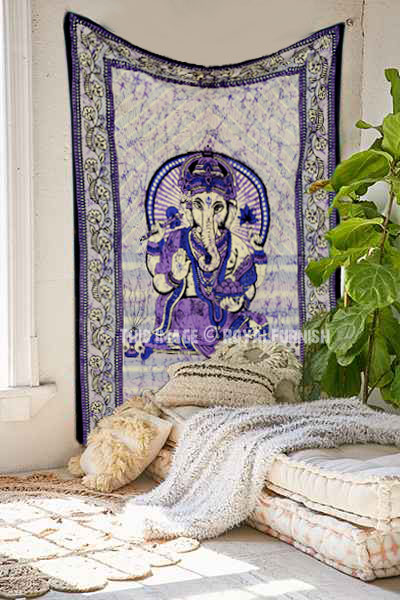 We've reached with distinctive, very reasonably priced asoortment of attractive hindu lord ganesha print lightweighted cotton tapestry wall hanging into batik style which fits with any kind of budget, each beautifully constructed from 100% fine cotton in India. The tapestry is finished with bordered edges. At a fist glance it delivers bohemain & hippie look which adorns any room be it dorm. It also contains one additional element .
