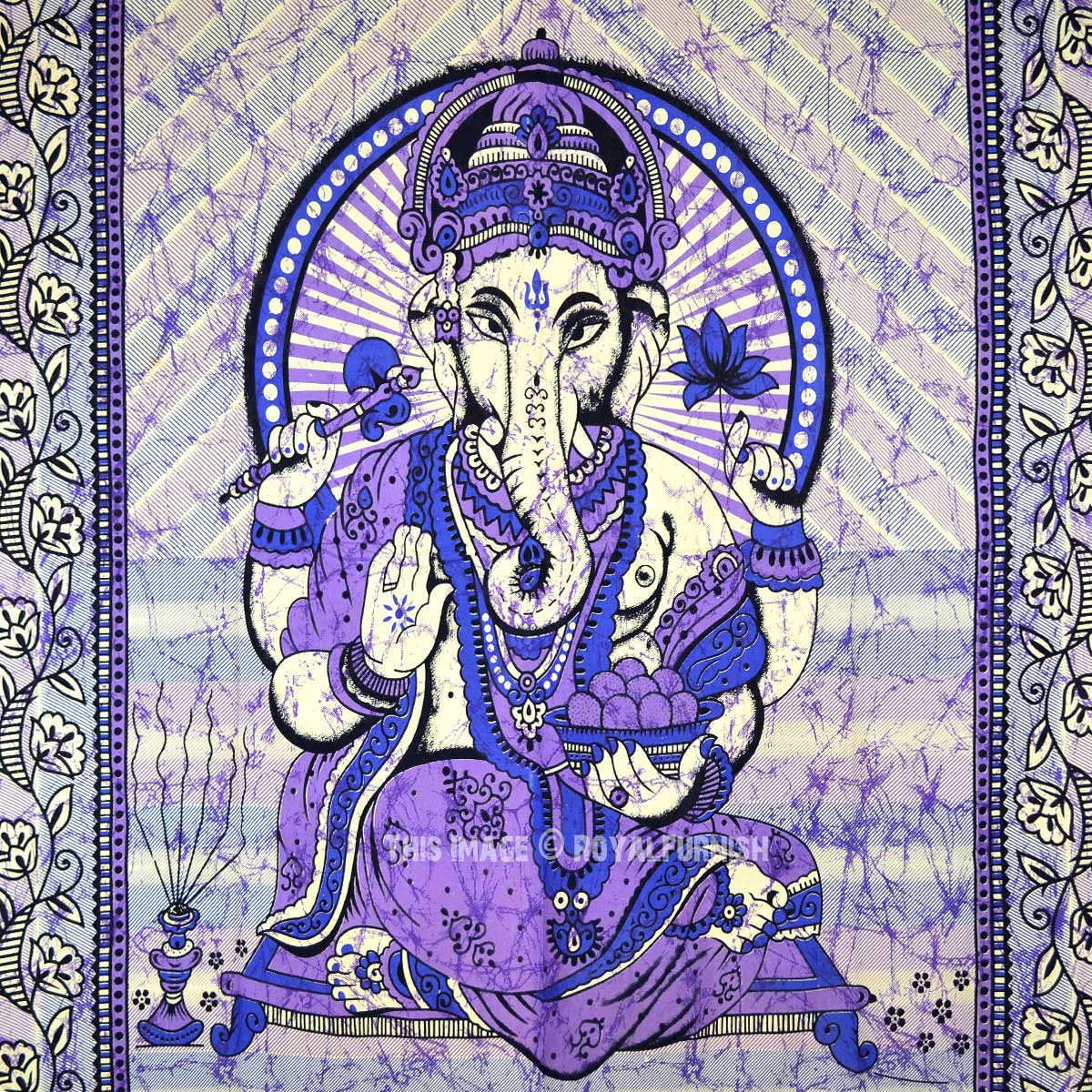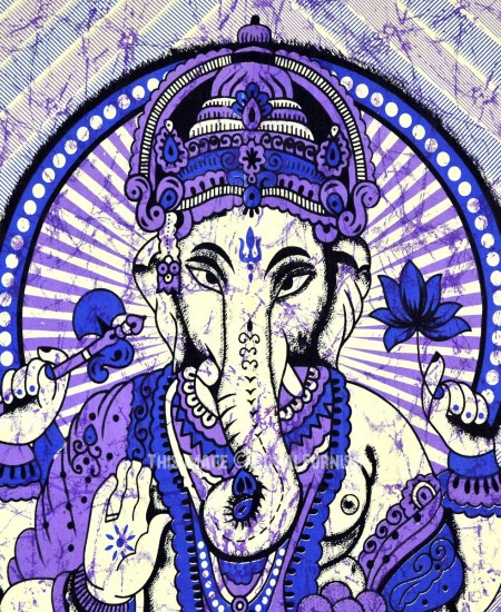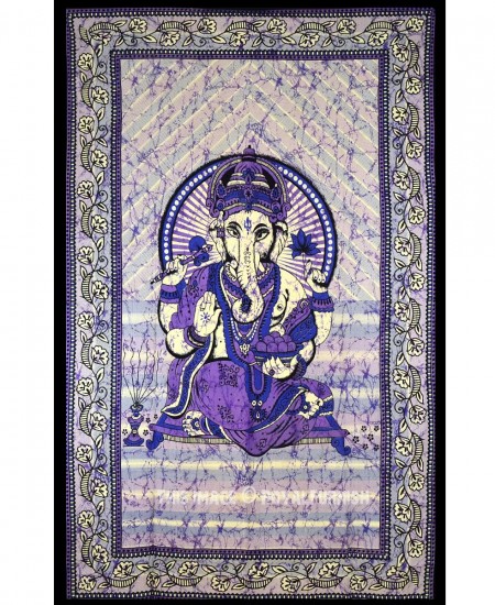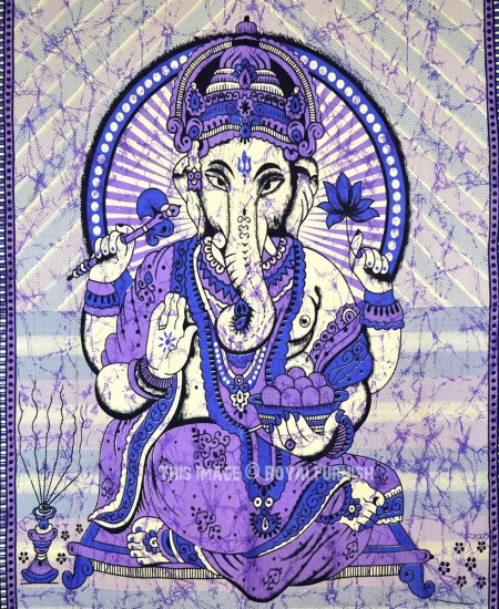Purple Batik Hindu Lord Ganesha Tapestry Wall Hanging