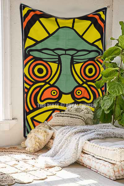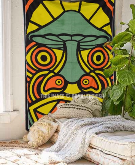 We've reached with distinctive, very reasonably priced assortment of attractive psychedelic mushroom wall tapestry wall hanging which fits with any kind of budget, each beautifully constructed from 100% fine cotton in India. The tapestry is finished with bordered edges. It is cool cotton fabric tapestry wall hanging which adorns any room be it college dorm, living room or bedroom. You can use it tapestry wall hanging or bedding.
