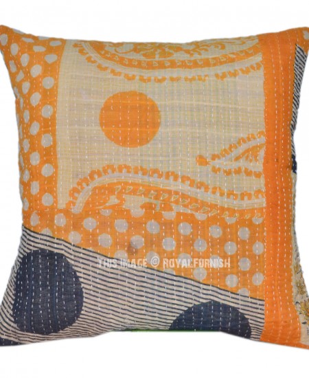 Kantha is still the most popular traditional embroidery artwork in rural area of India. Perfect in their imperfections, vintage kantha throw pillows are a one of a kind cotton textile. Women in rural area of Bengal, India stitch together vintage sarees with number of tiny running hand stitching, called Kantha. It is 100% hand stitching work. Perfect for the end of your bed or draped on your couch, for amazing kaleidoscope of colour, completely transforming and brightening up any living space with their fantastic details and vibrant colours.