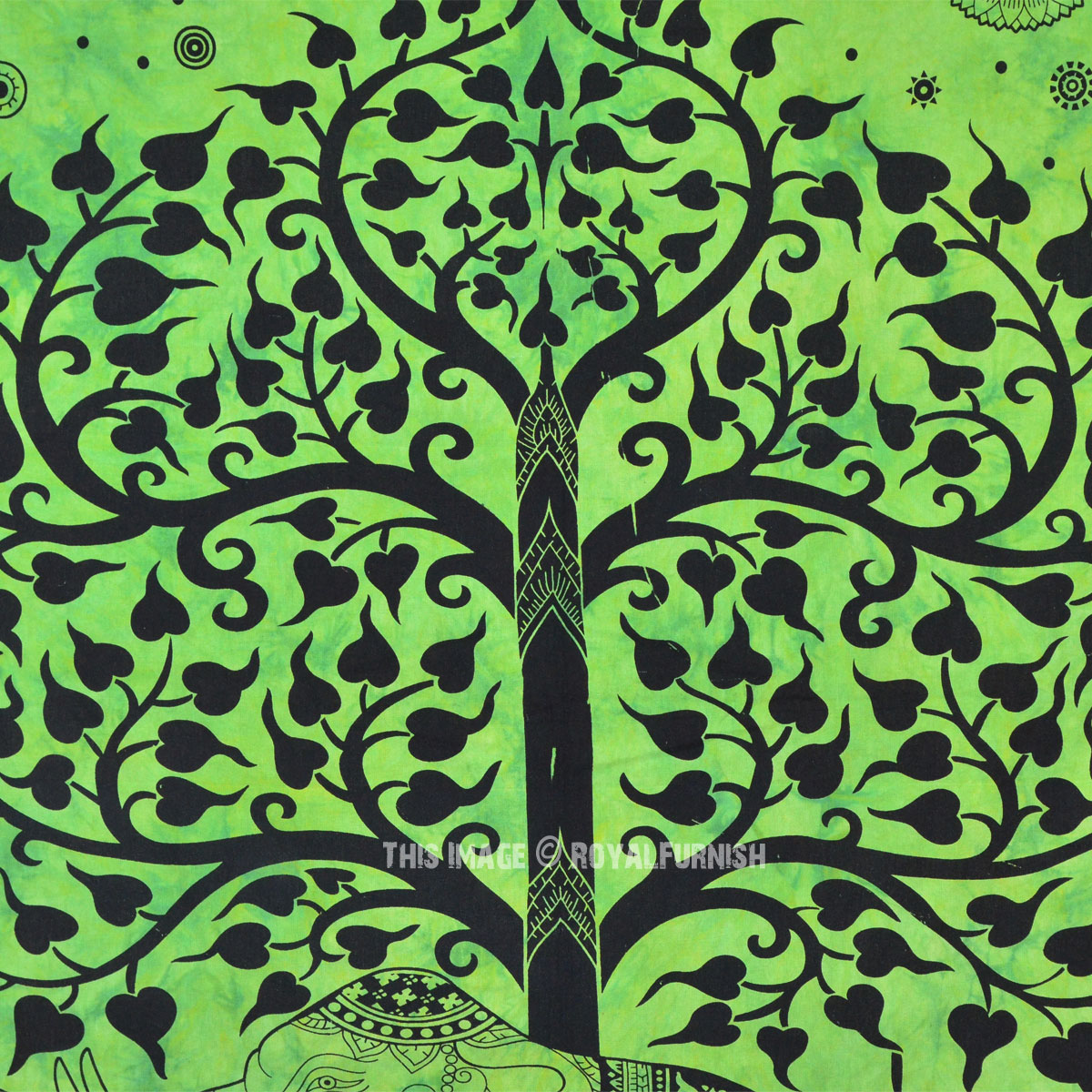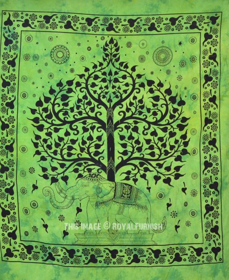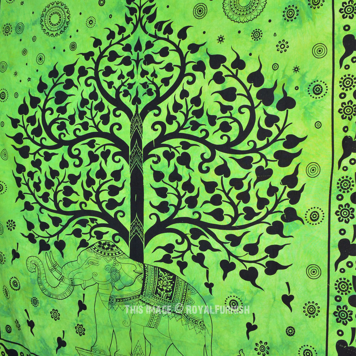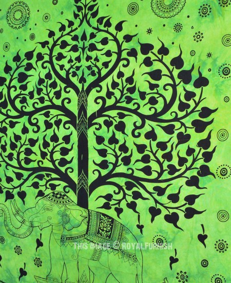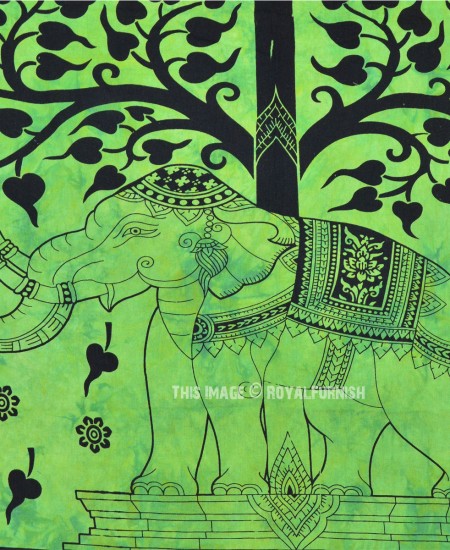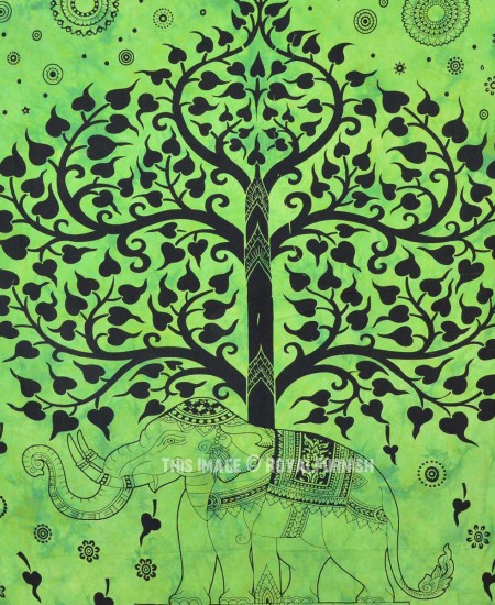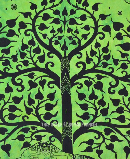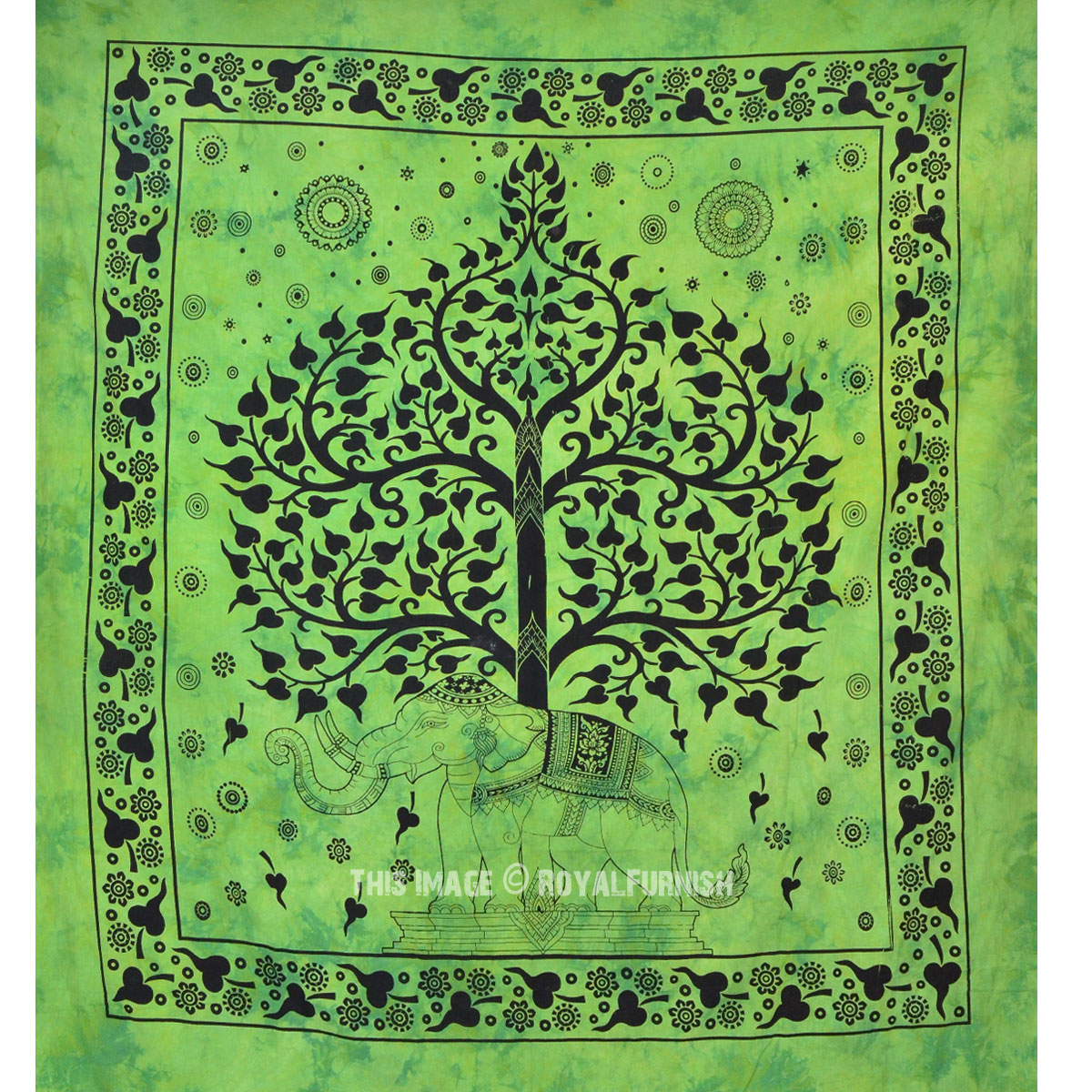 Green Elephant Tree Good Luck Tapestry Wall Hanging Bedding