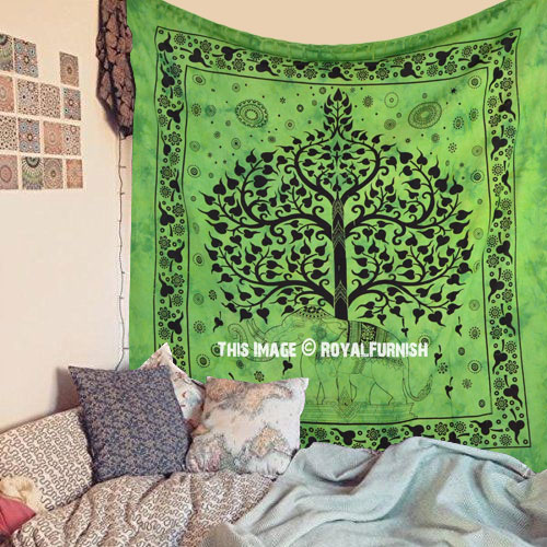 Revamps your walls without any hassles and fusses with stylish and appealing elephant & tree printed tapestry wall hangings. It can be used on any of the walls to suit your living room or even bedroom interiors. New elephant design with tree allows you to experiment with your home interiors. It is 100% cotton so can be used as bedspread bedding as well.
