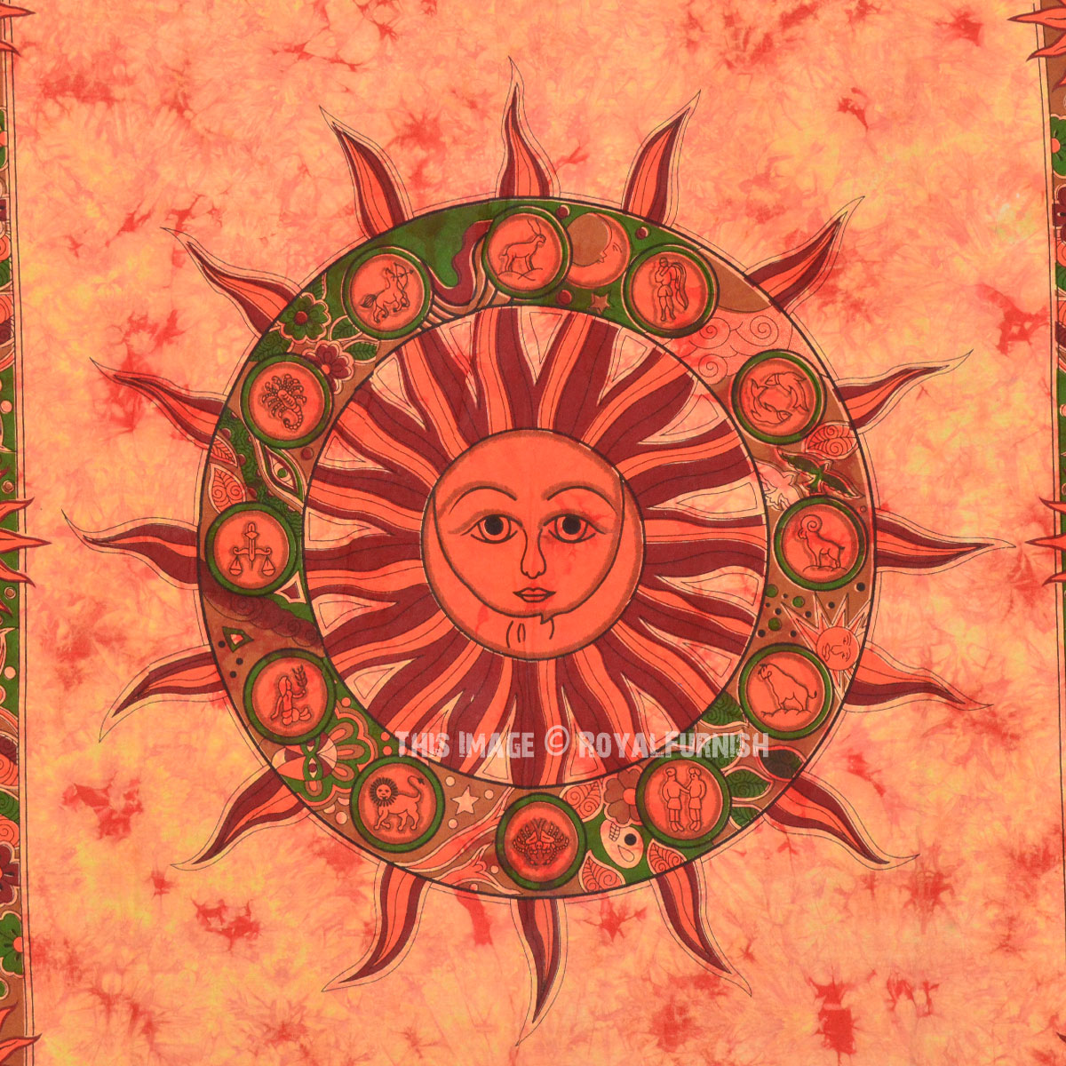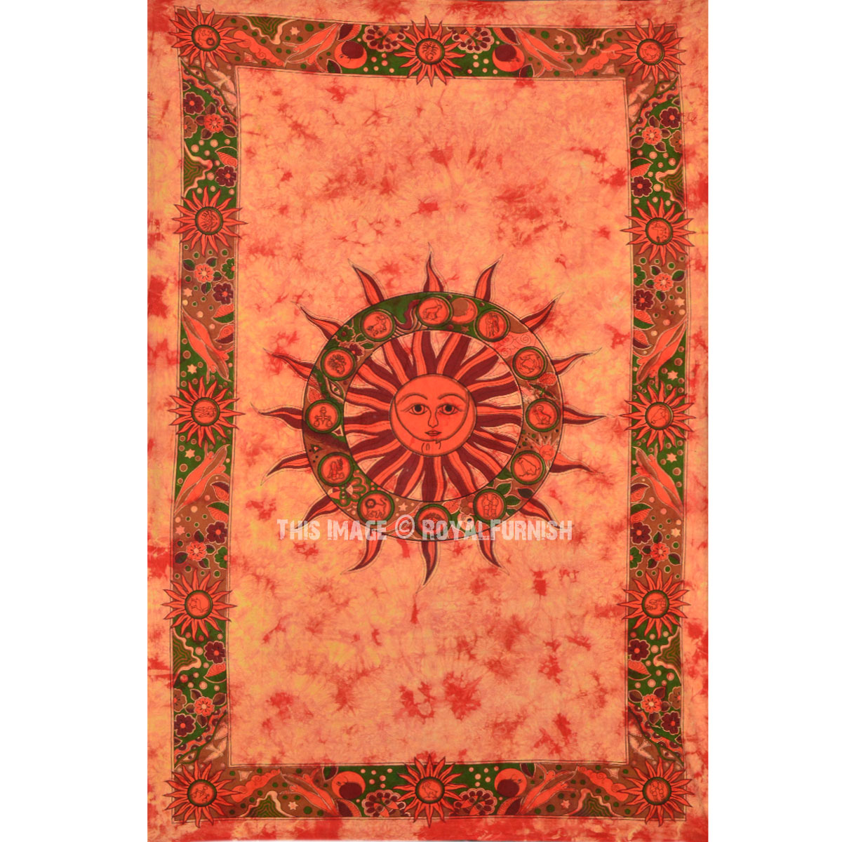 Small Orange Celestial Sun Tie Dye Wall Tapestry, Twin Tapestry Bedding