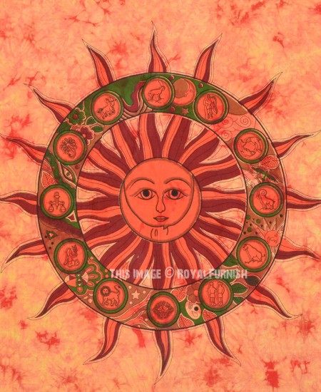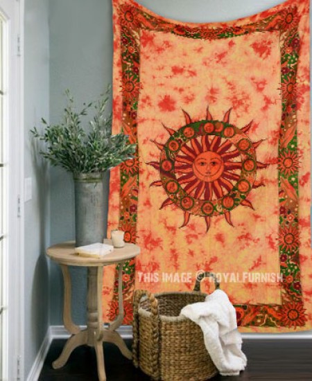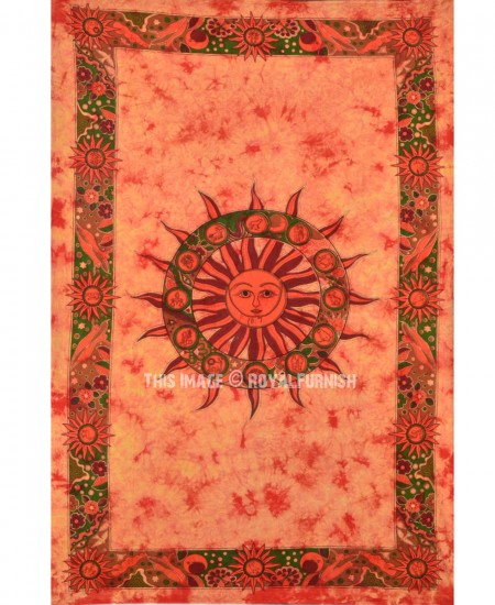 We've reached with distinctive, very reasonably priced assortment of attractive hippie celestial sun moon & stars printed light weighted cotton tapestry wall hanging which fits with any kind of budget, each beautifully constructed from 100% fine cotton in India. The tapestry is finished with bordered edges. It is cool cotton fabric tapestry wall hanging which adorns any room be it college dorm, living room or bedroom. You can use it tapestry wall hanging or bedding.