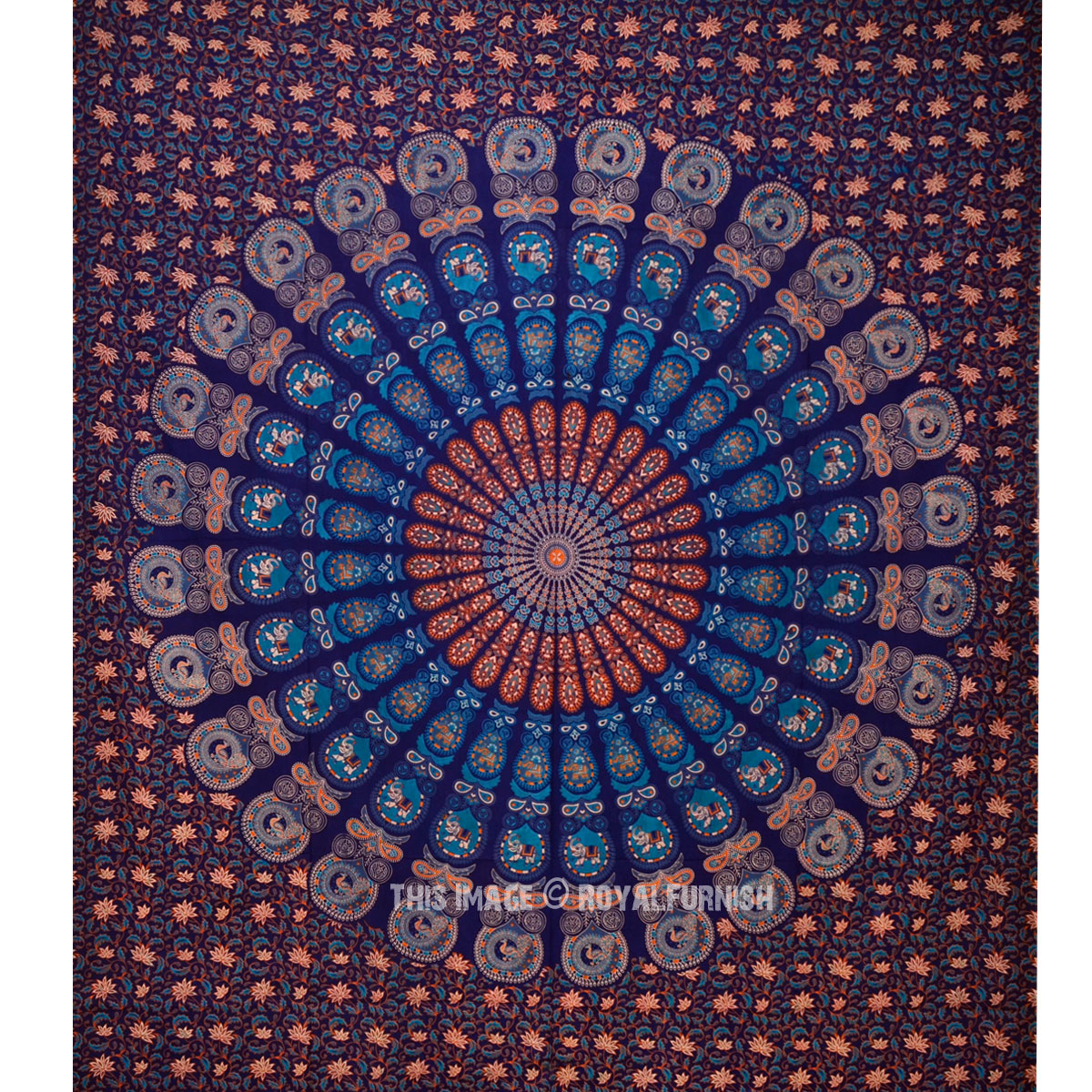 Blue Multi Animal Bohemian Mandala Wall Tapestry Bedding