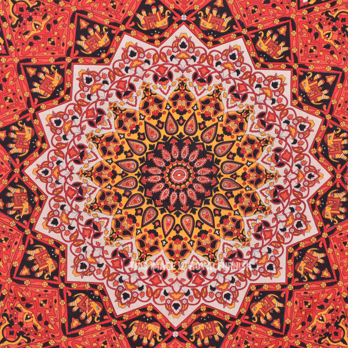 Large Red Psychedelic Style Star Elephant Wall Tapestry, Indian Hippie Bedding