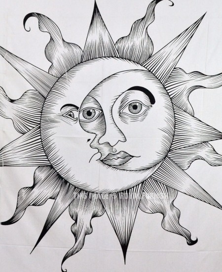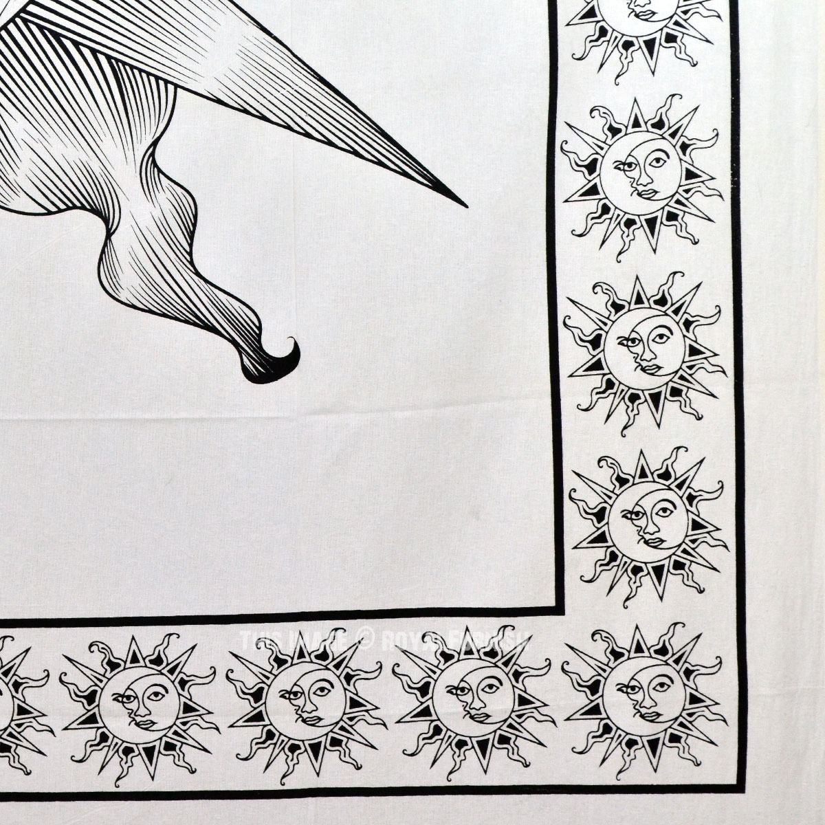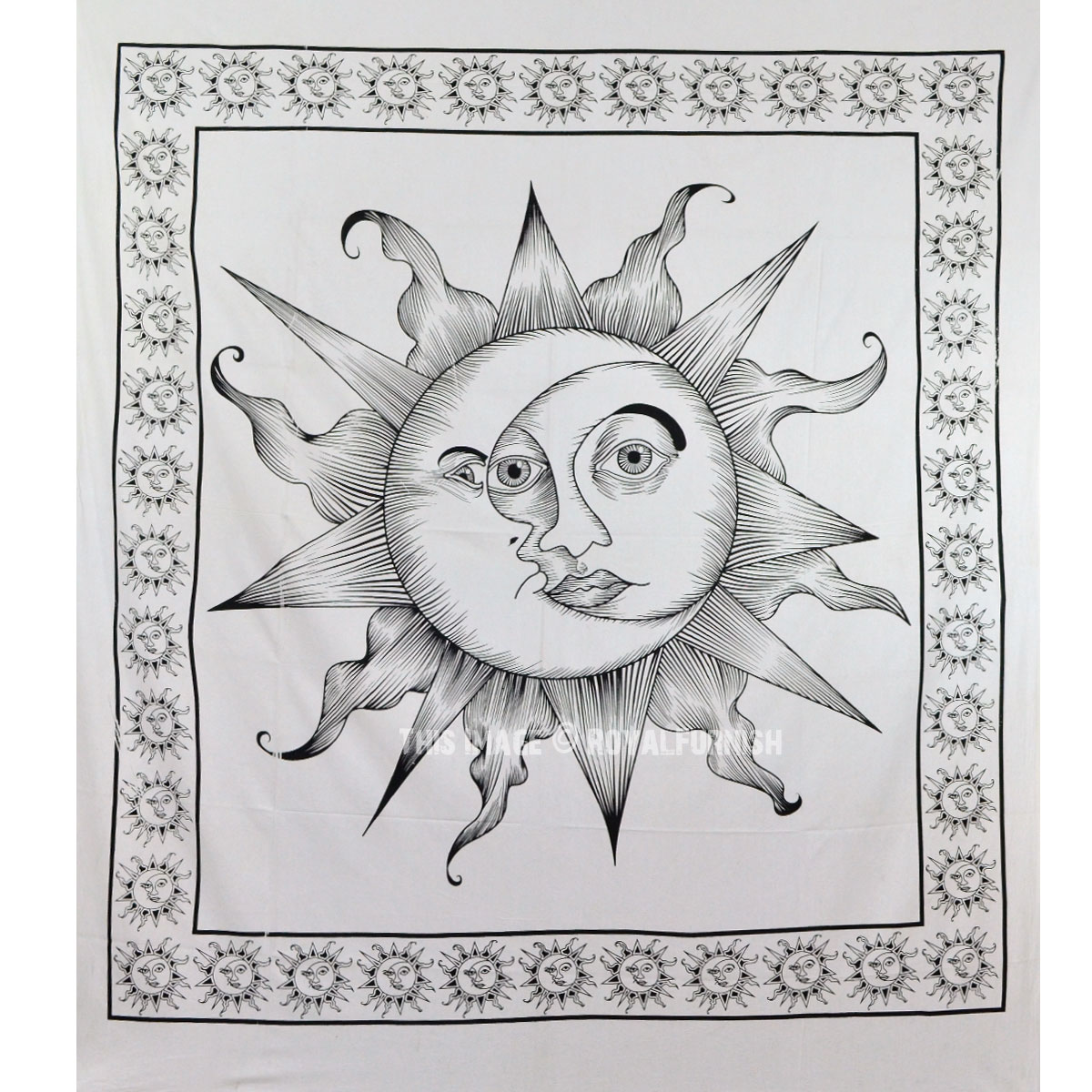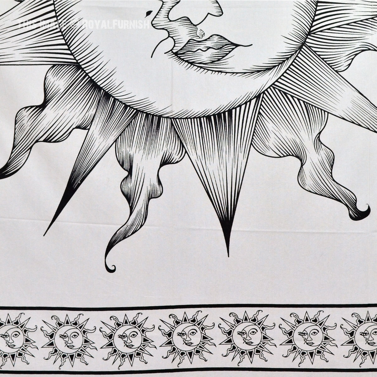 We've reached with distinctive, very reasonably priced assortment of attractive white and black sparkling sun moon fringed cotton tapestry wall hanging which fits with any kind of budget, each beautifully constructed from 100% fine cotton in India. It has fringed on its top and bottom.