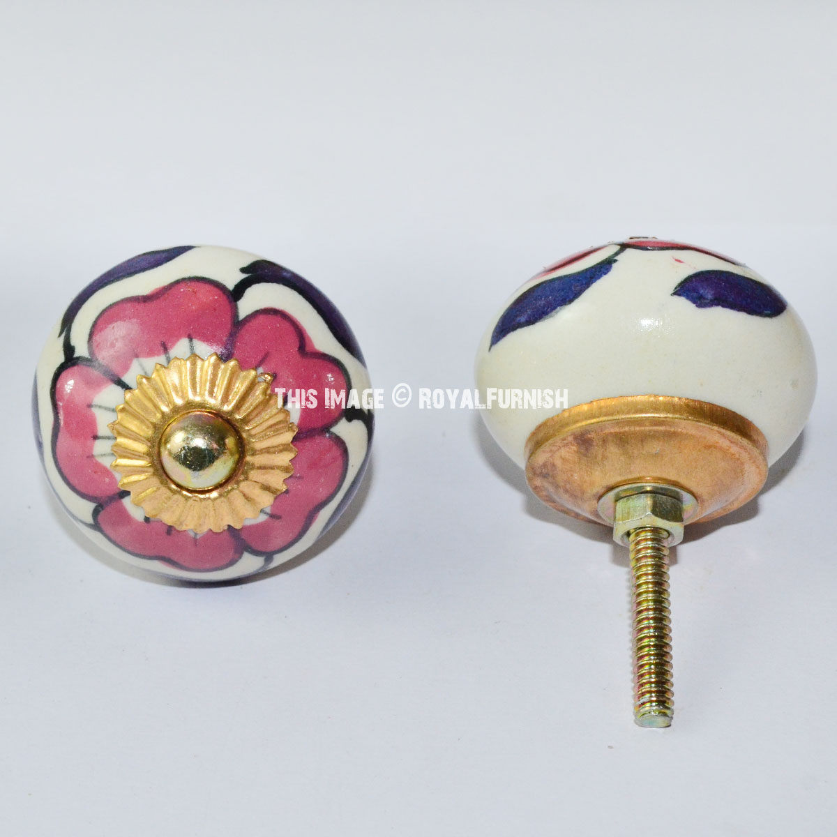 Handcraft knob offers a unique blend of rustic and refined style. Face of knob is hand painted on ceramic material in crafted style. Brighten the look of your drawers and cabinets with handcrafted ceramic knobs.