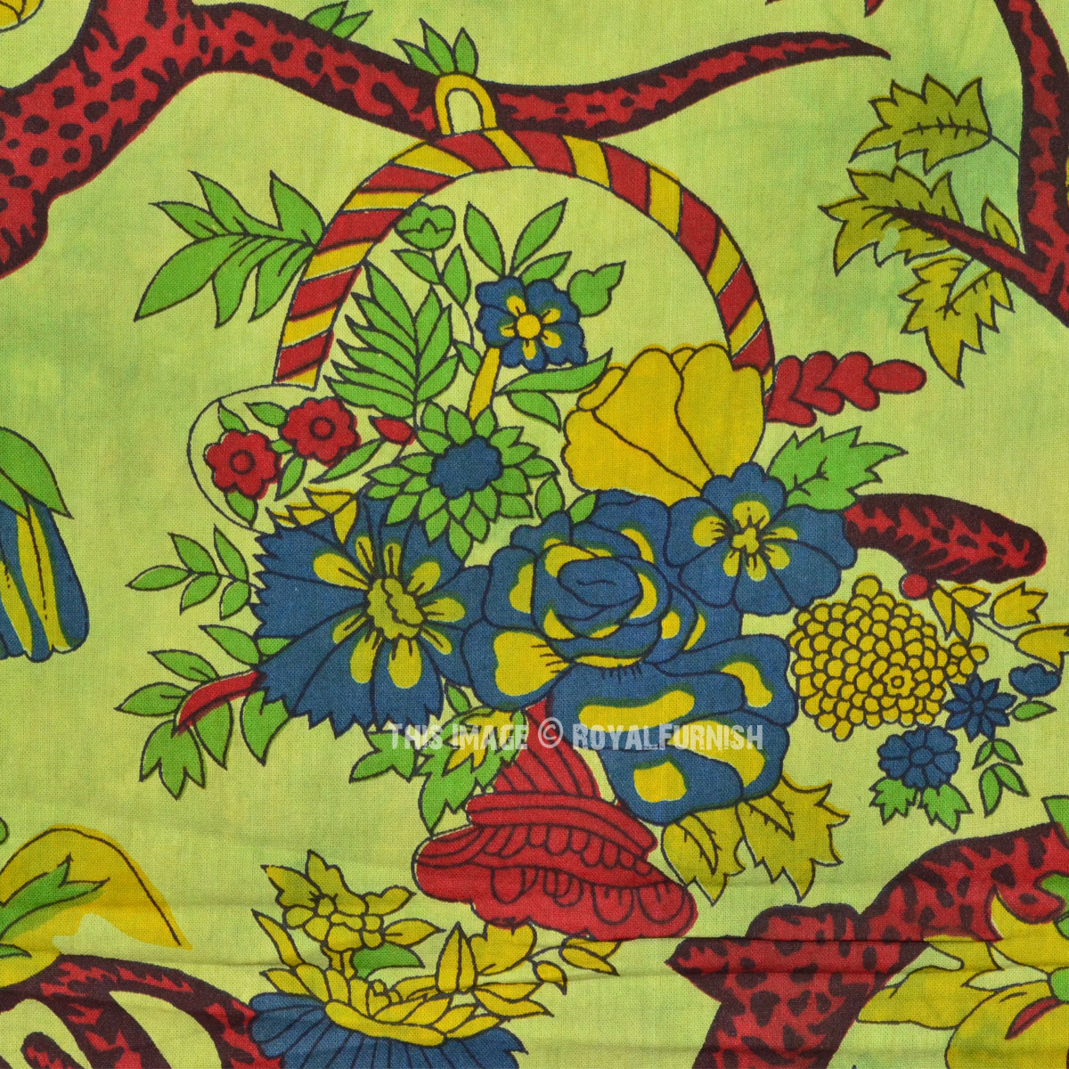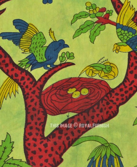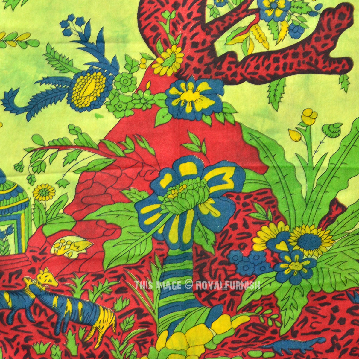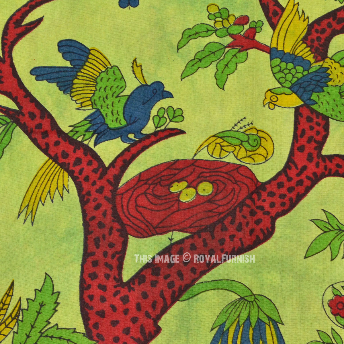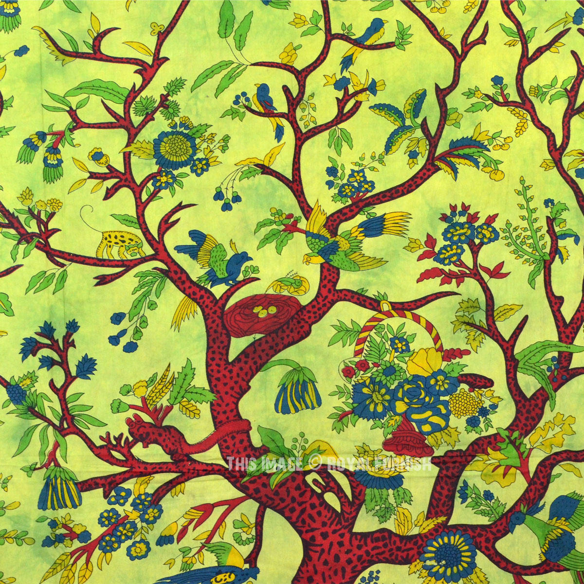 Green Cotton Fabric Tree of Life Wall Tapestry, Indian Twin Bedding