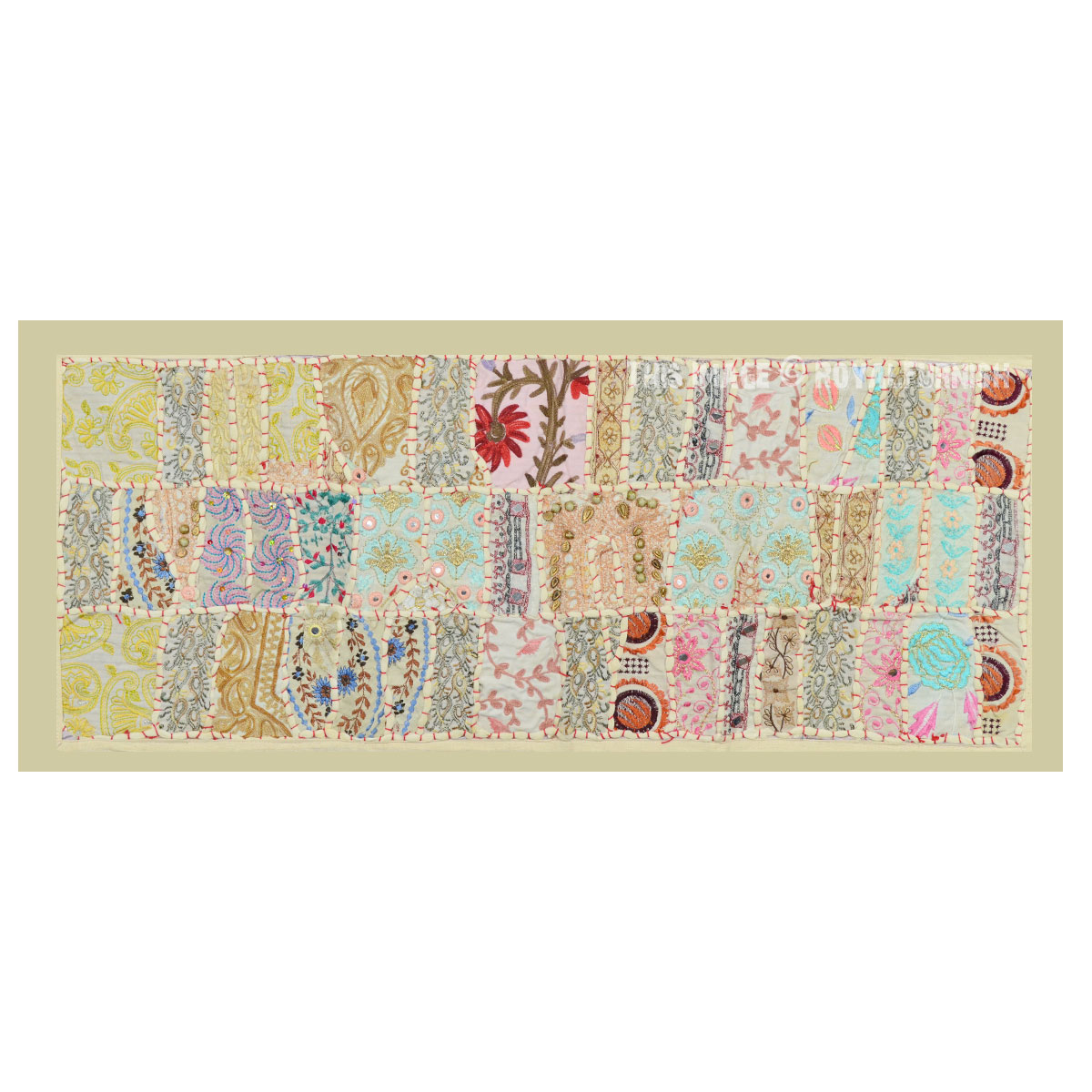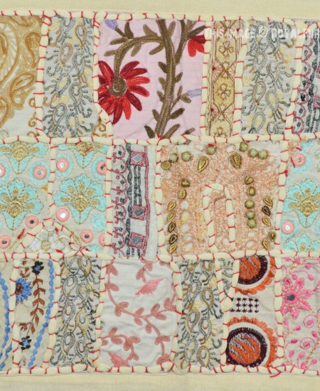 White Hand Embroidery Reycled Patchwork Runner Tapestry