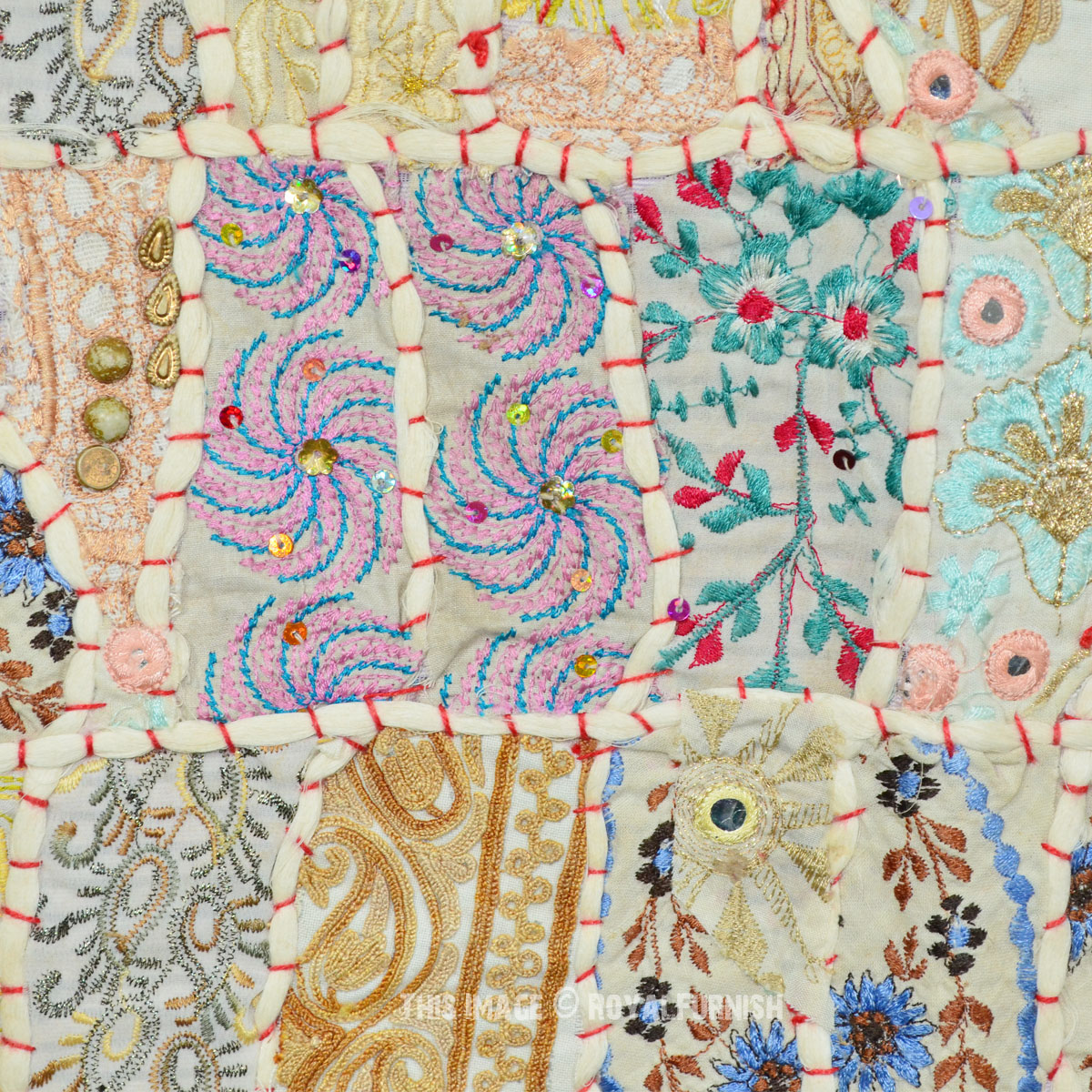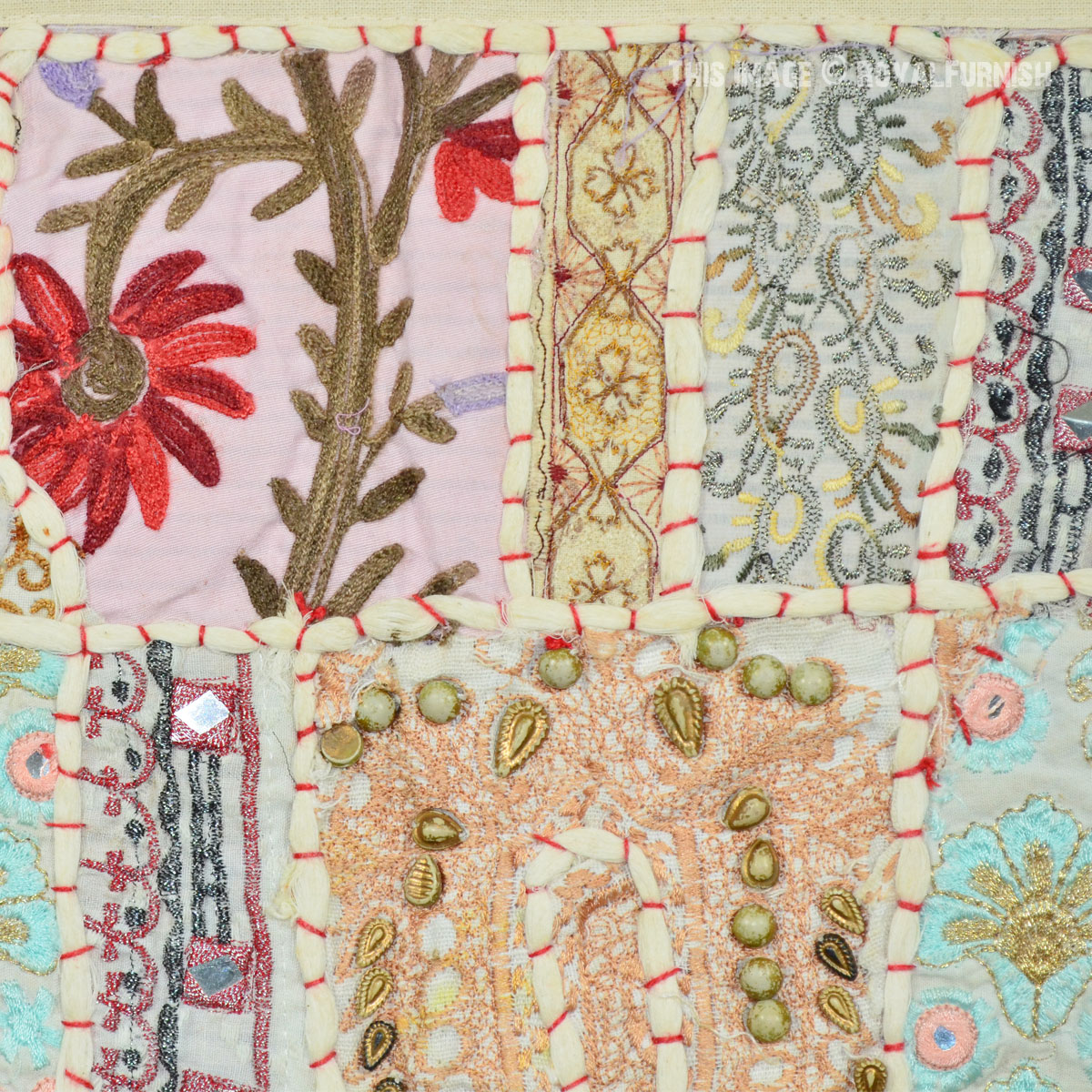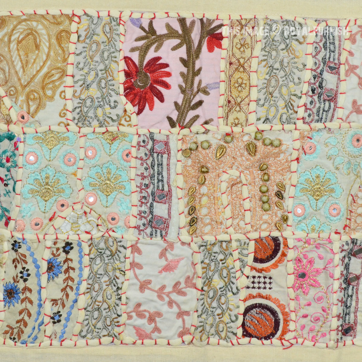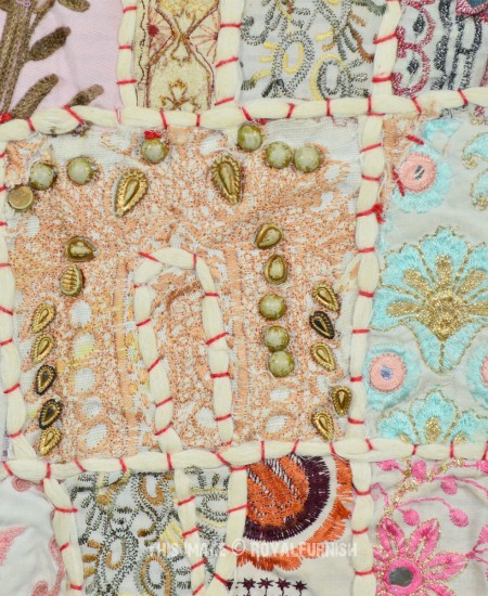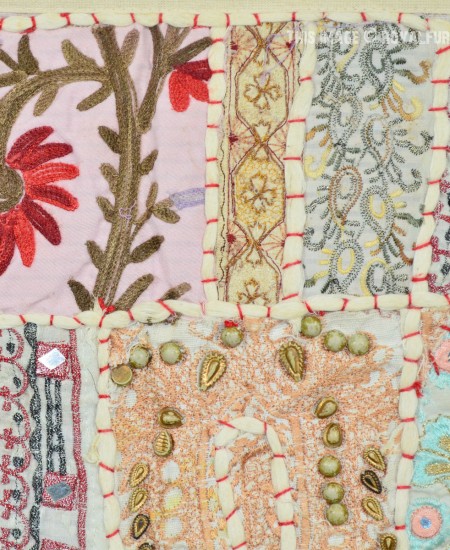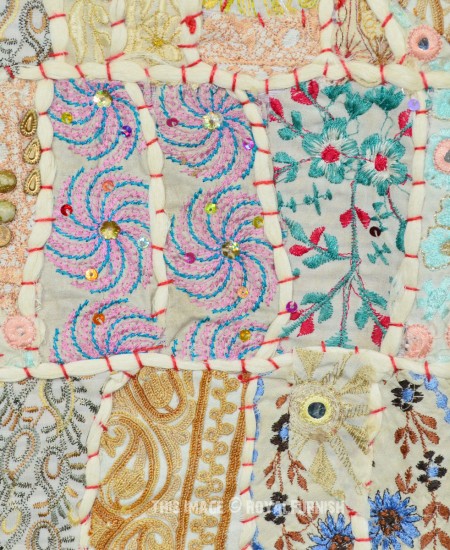 Create a beautiful centerpiece or focal point into any room with intricate patchwork design wall tapestry. Walls are integral part of any house to enhance the home interior.To change the mood of home interior hang the beautiful Indian patchwork tapestry to re-vamp the walls and improve the over-all ambience and decor. It contains interesting and ethnic vintage look which reminds you cultural history of royal rajasthan. The tapestry is made with recycled fabric Indian old sari, suit and cutted into small pieces and all pieces are joint perfectly with hand sewn threads embroidery.