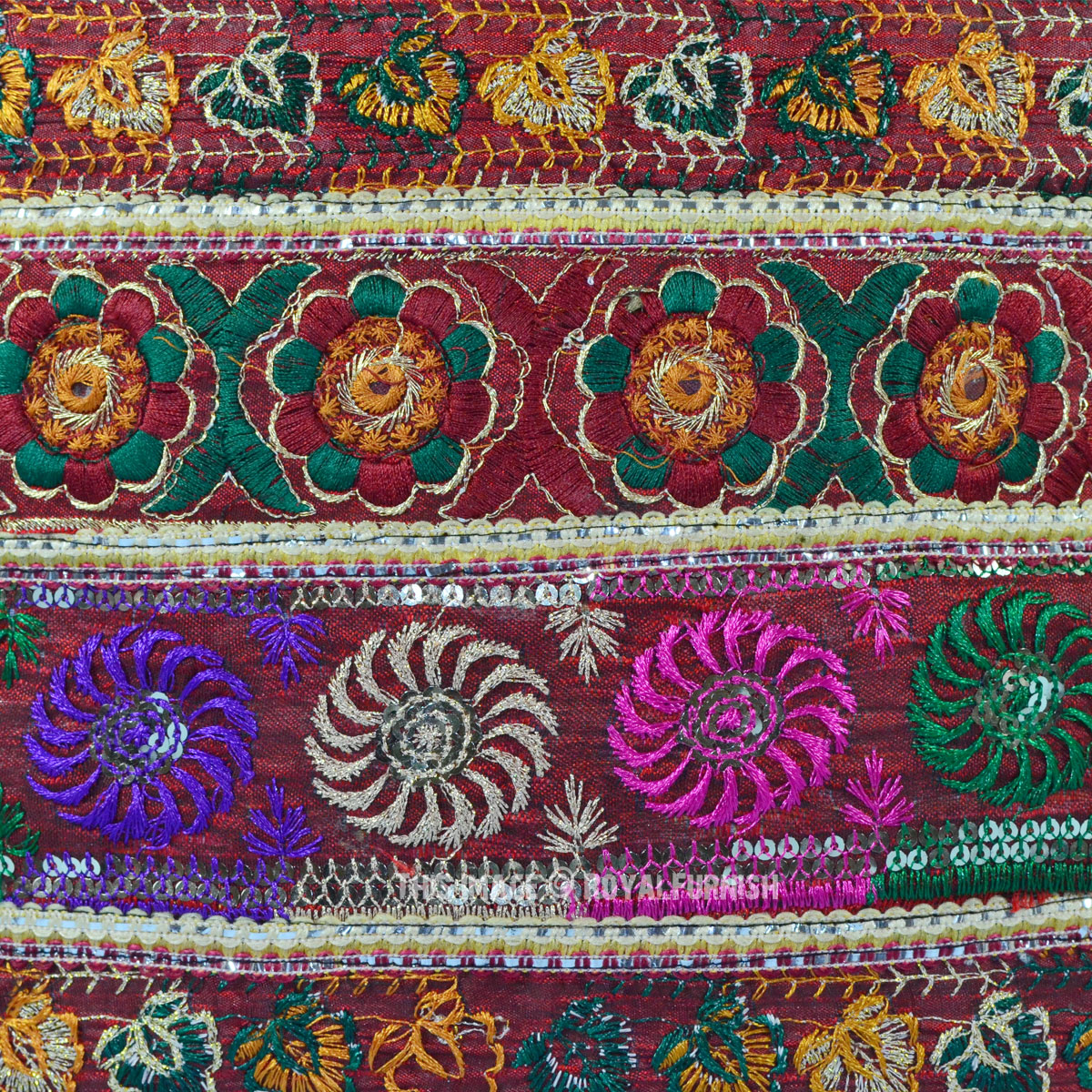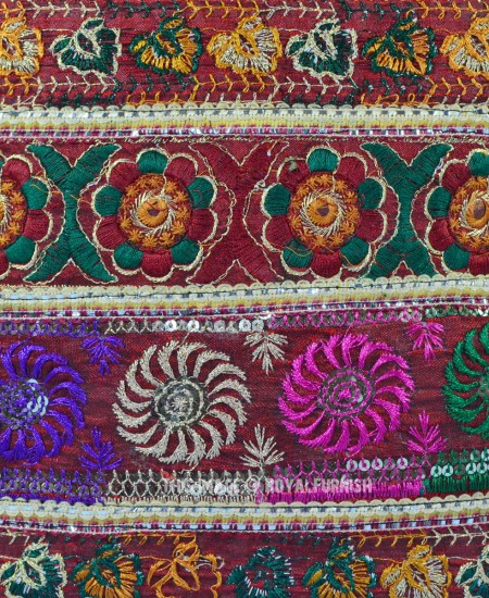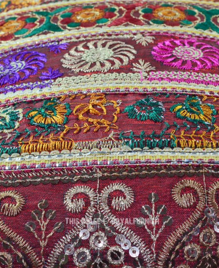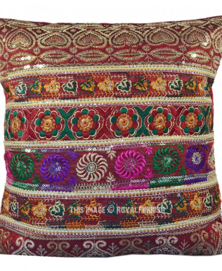 The beautiful India handicraft floral Silk pillow is made in India. The hand embroidered threads delivers it a rich look. Add it on home furniture it will add warmth, color and traditional style to any room. The traditional styles of thread embroidery developed in Rajasthan and Gujarat are displayed here with remarkable craftsmanship and expertise! Witness the meticulous thread and sequin work in multiple colors and the magnificent image of India's beloved !