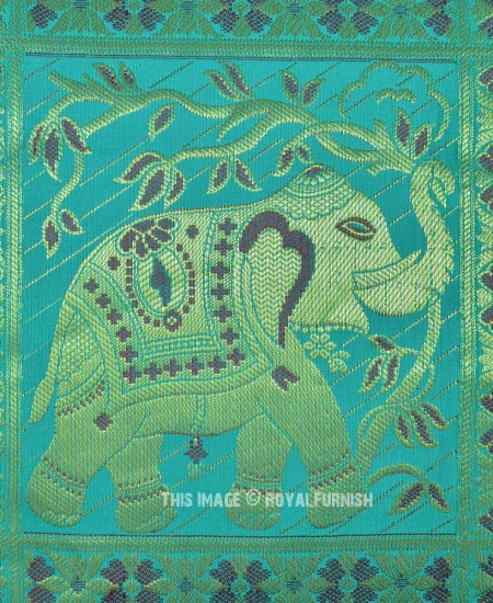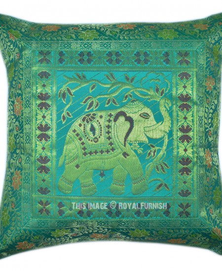Light Green Handcrafted Elephant Silk Throw Pillow Sham