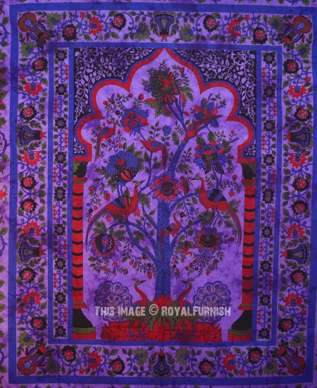Tapestries are great idea to instant makeover to any room and remove dull ambiance and give revive look to the home interior. Beautiful temple tree of life cotton tapestry wall hanging gives a royal touch to your home interior. The tapestry features a tree, birds, brich design into vibrant colors.