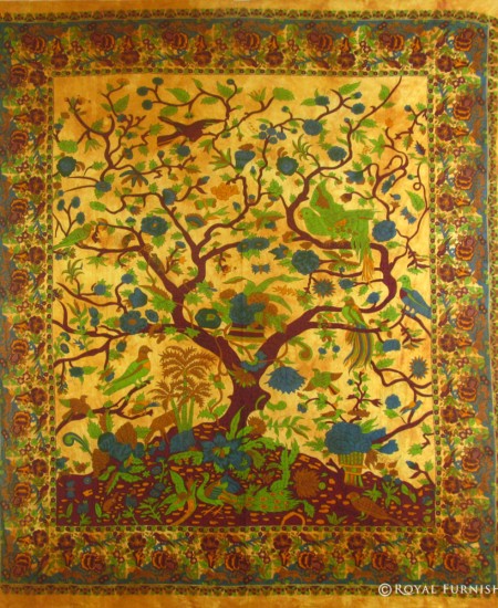 We've reached with distinctive, very reasonably priced asoortment of attractive hippie tree of life tie-dyed print lightweighted thin cotton tapestry wall hanging which fits with any kind of budget, each beautifully constructed from 100% fine cotton in India. The tapestry is finished with bordered edges. At a fist glance it delivers bohemain & hippie look which adorns any room be it dorm or living room/bedroom.
