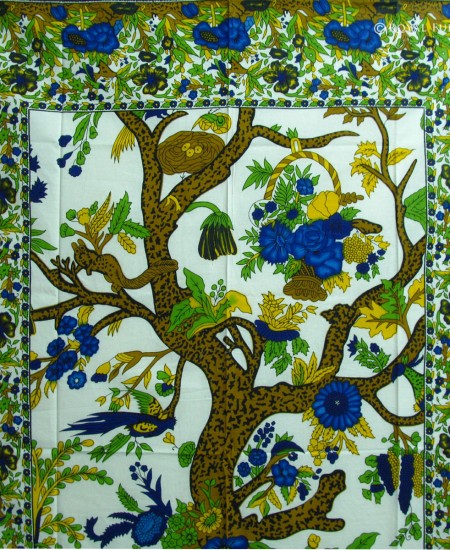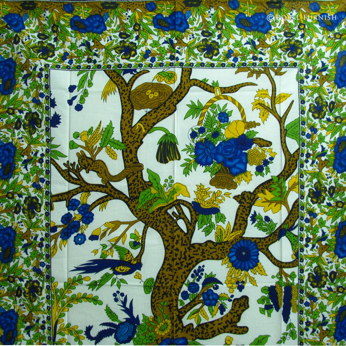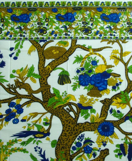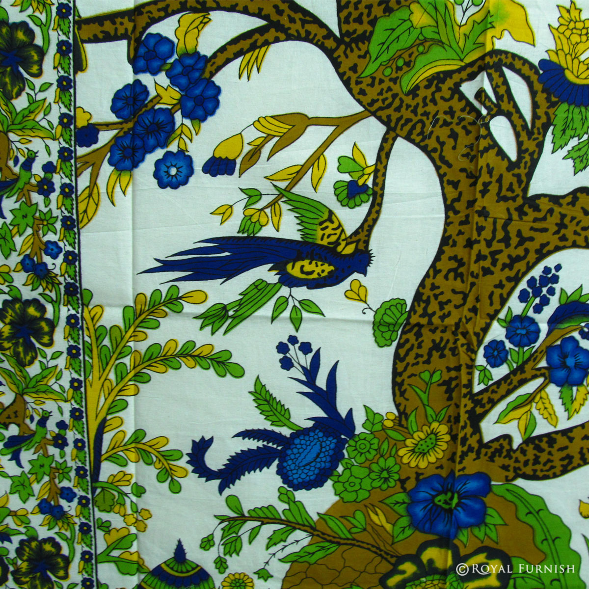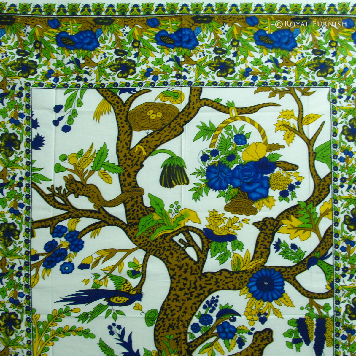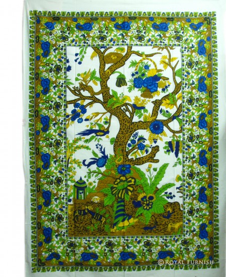 Twin Size White Indian Tree Of life Tapestry Wall Hanging Coverlet