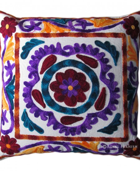 Indian Handmade Designer Cushion Cover Suzani Embroidered Handwork Pillow Cover