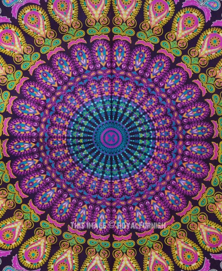 Purple & Pink Multi Small Medallion Mandala Tapestry, Indian Bedding Throw
