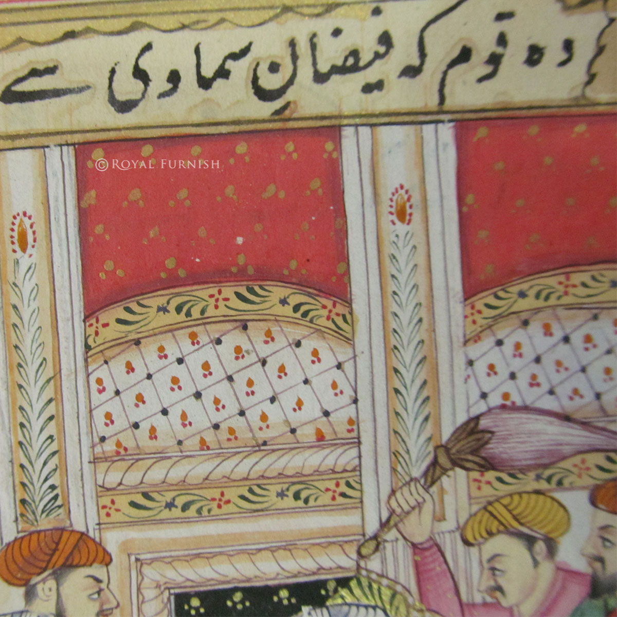 In the Mughal Empire, leisure was a luxury confined to the pleasures of the aristocracy. High cuisine and wine, garden parties, game hunting, animal fights, pigeon flying/Love Scene, archery and horse riding constituted imperial entertainment and this beautiful painting portrays their pigeon flying/ Love scene life. They had court to resolve empire's issues and painting depicts thats all.