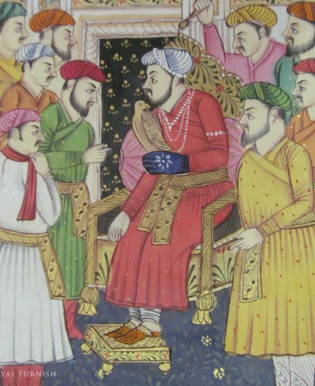 Indian Mughal Court Scene Rajasthan Miniature Painting