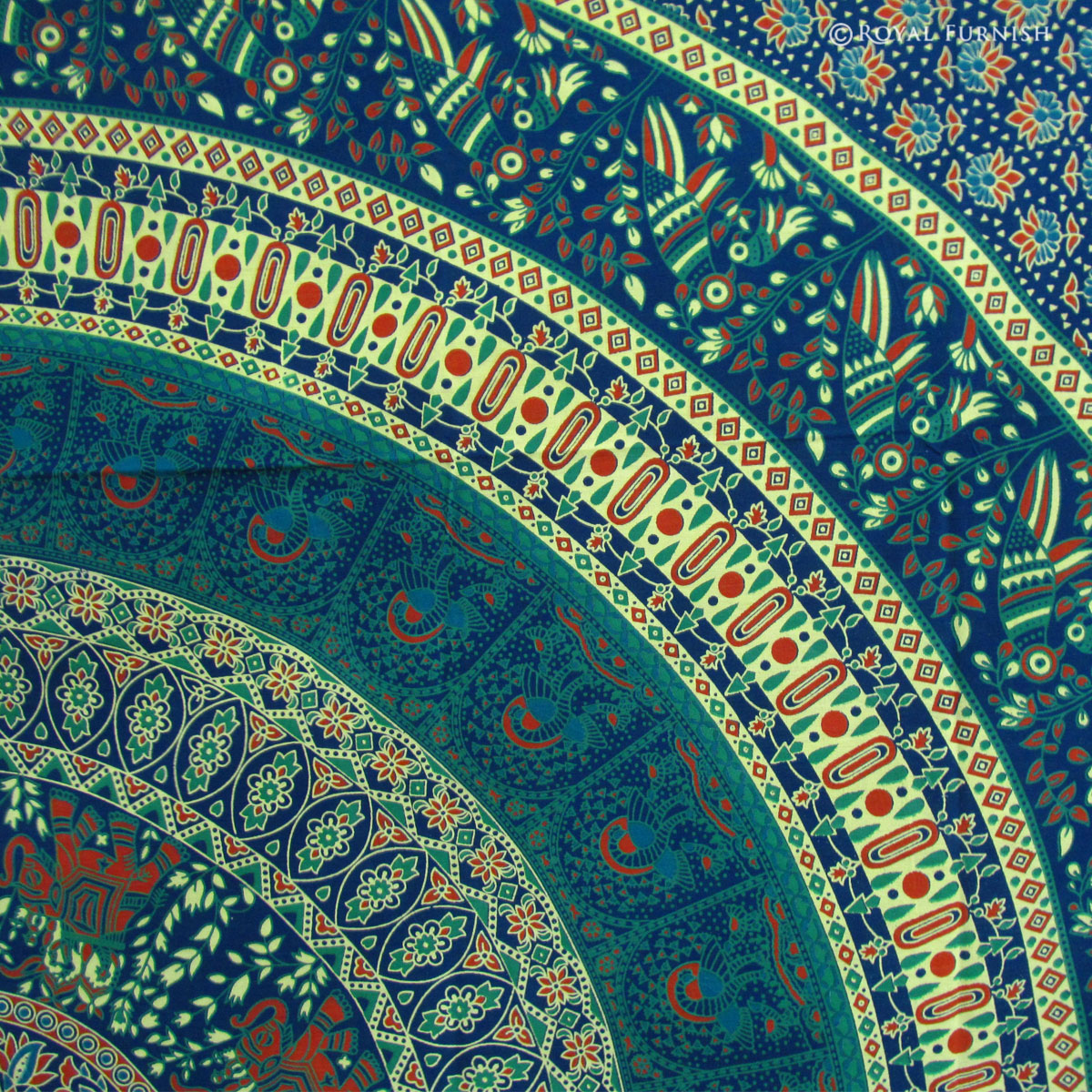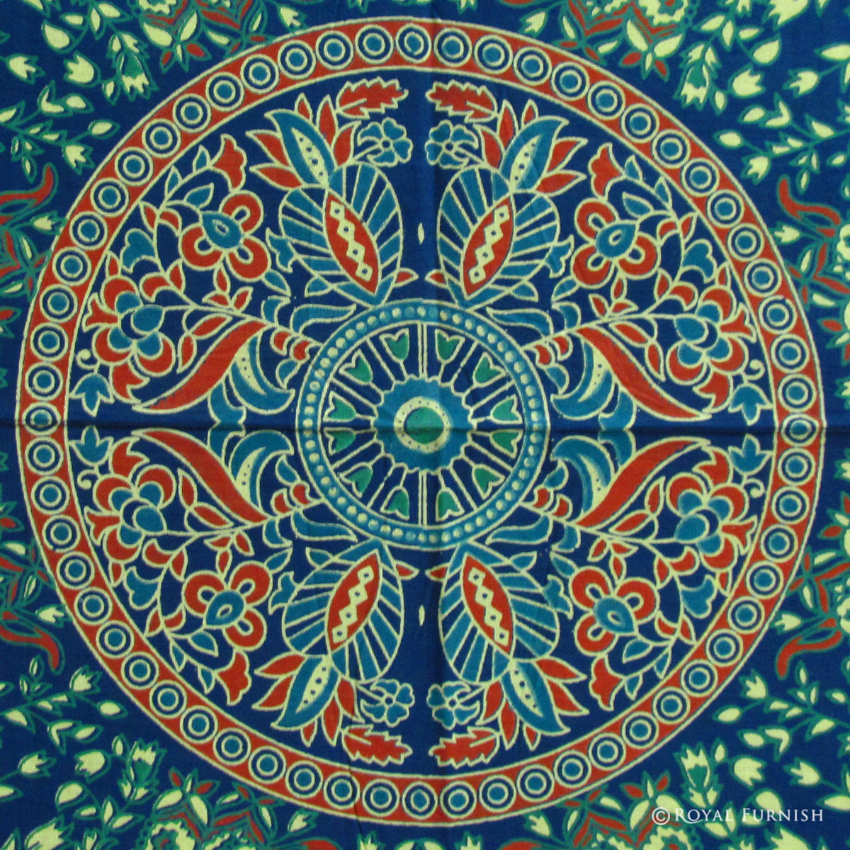 Beautiful Indian mandala tapestry wall hanging gives a royal touch to your home interior. Indian Mandala tapestry wall hanging consist vibrant color, round circle in the circle and stunning design which gives a new look to your home. It can be used in different ways to decor home like as bedspread, tapestry, wall hanging, bed cover, Coverlet, sofa cover. It is pure cotton Indian mandala tapestry bed cover which is perfect example of Rajasthan screen printed bedspread bedding sheet.