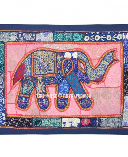 Blue Multi Patchwork Embroidered Elephant Wall Hanging