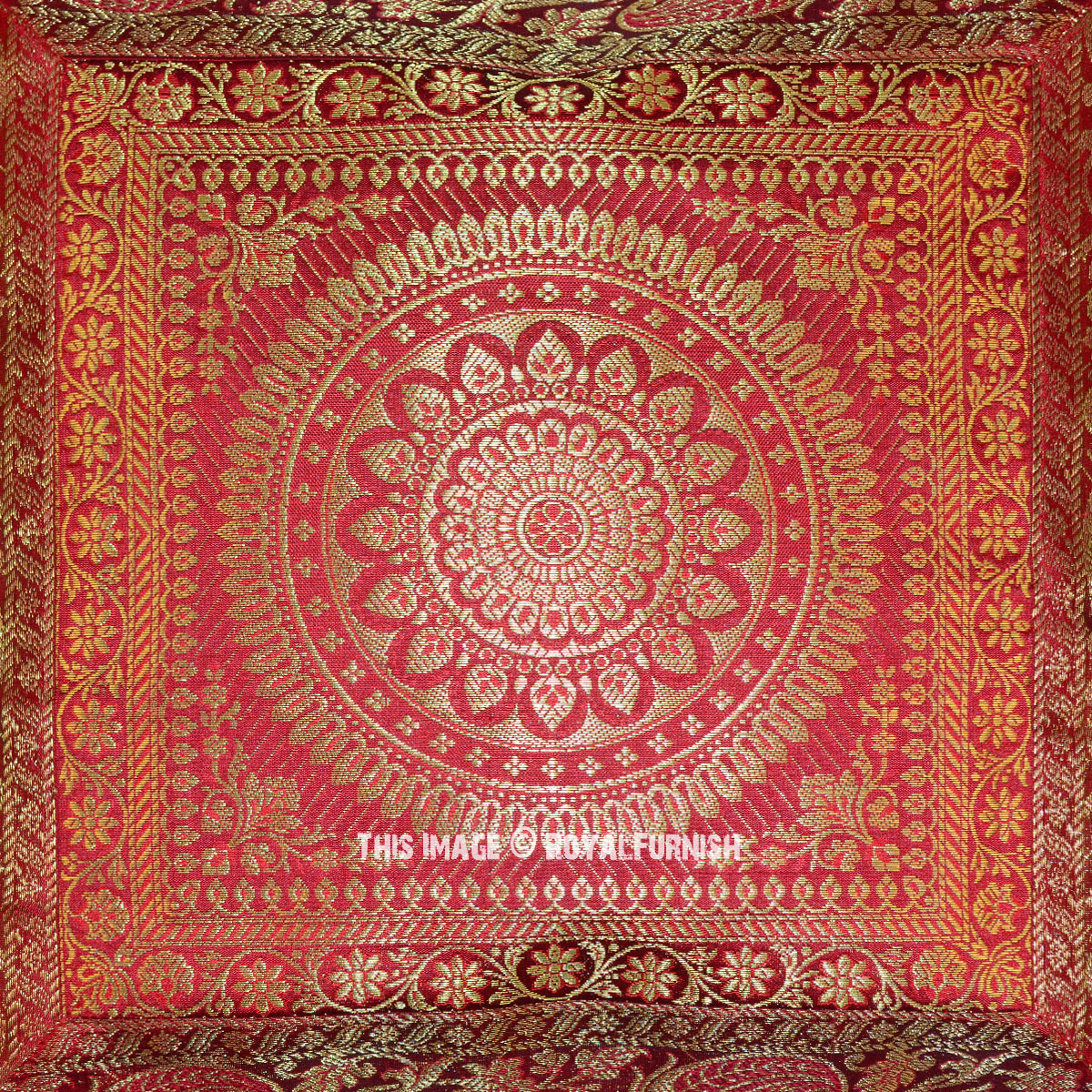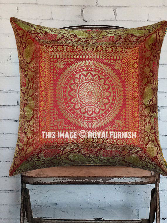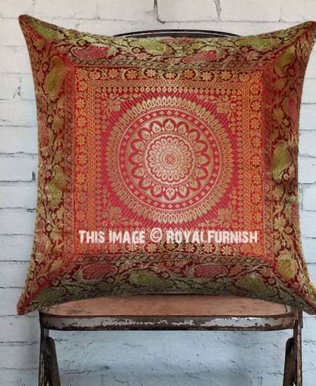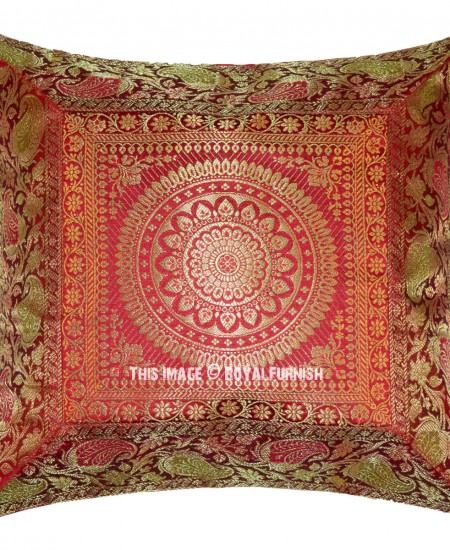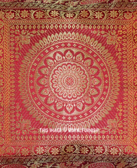 16" Maroon Decorative Mandala Silk Throw Pillow Case