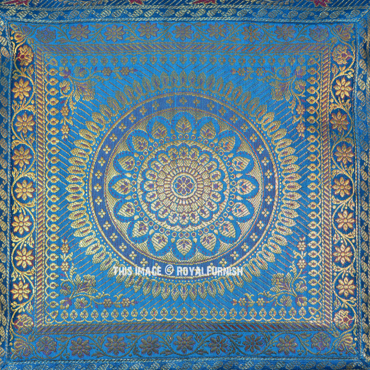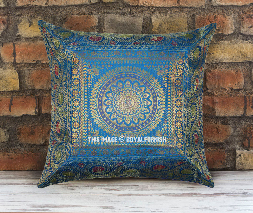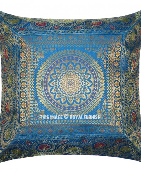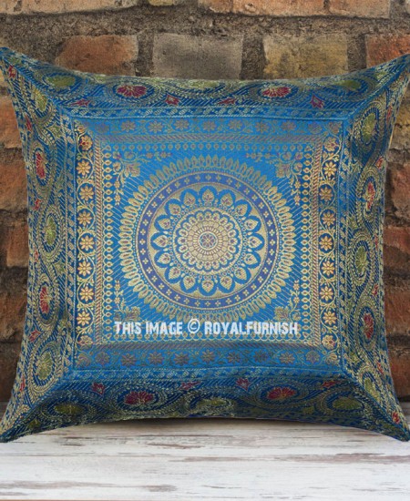 Turquoise Decorative Unique Mandala Silk Throw Pillow Case