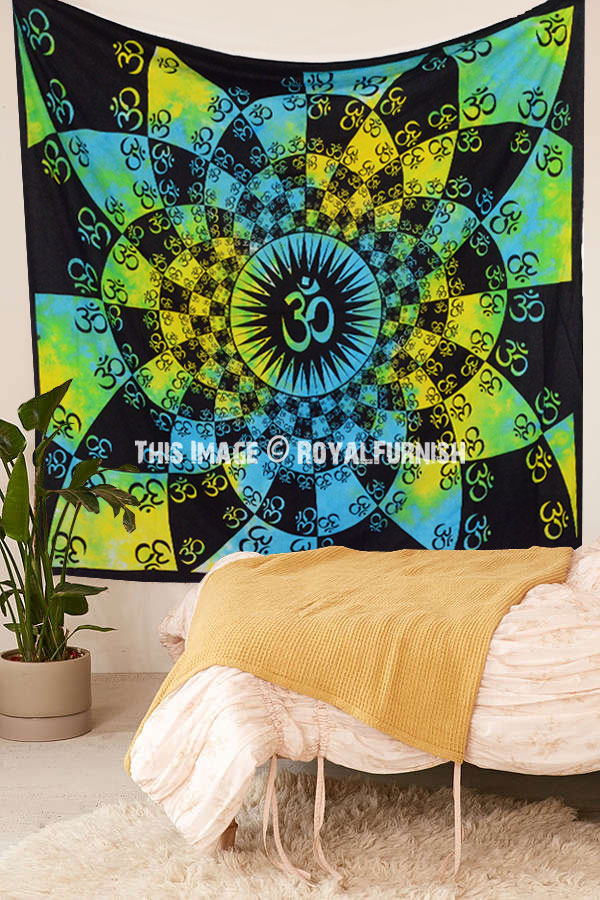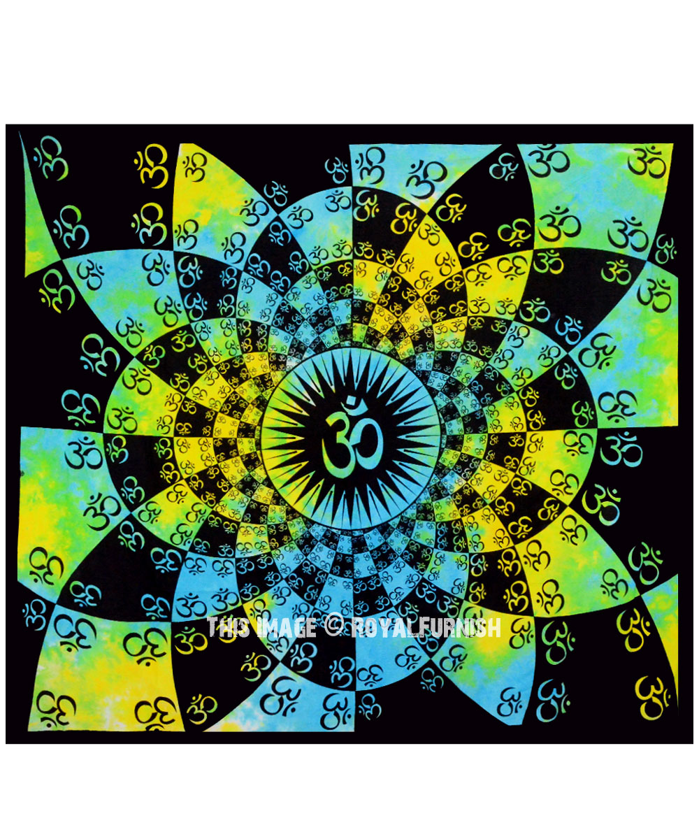 Multi Tie Dye Hindu Holy Symbol OM Meditation Wall Hanging Tapestry