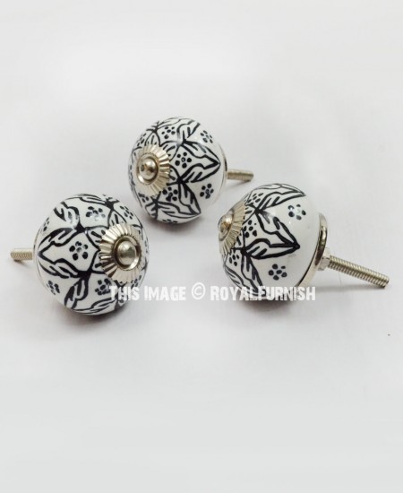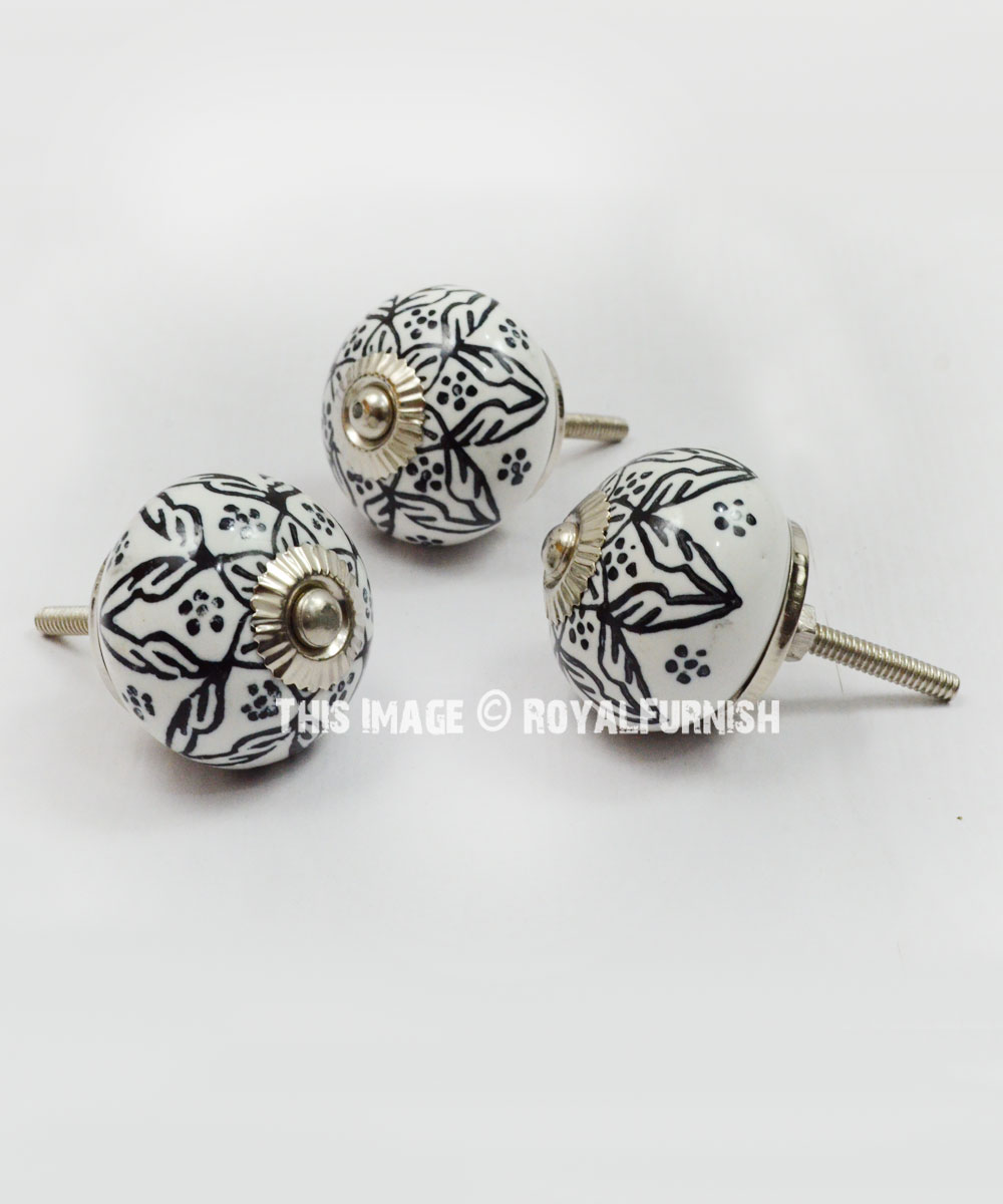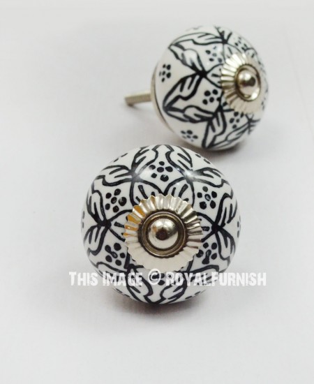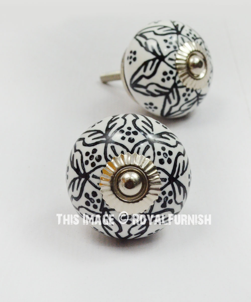 White & Black Unique Decorative Ceramic Drawer Knobs Set Of 2