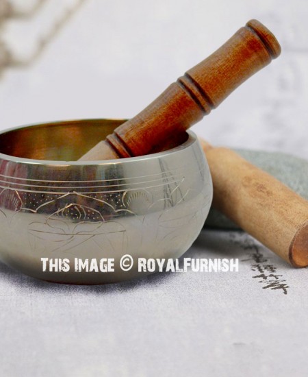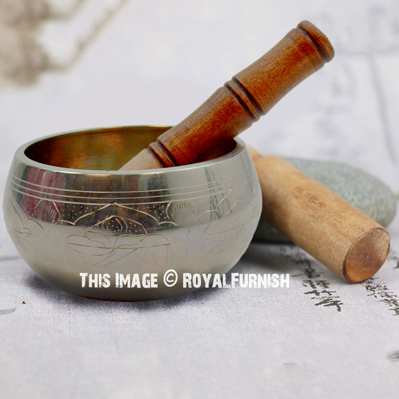 Silver Color Tibetan Singing Bowl Set with Mallet & Cushion - 4.5 Inch Perfect Spiritual Gift