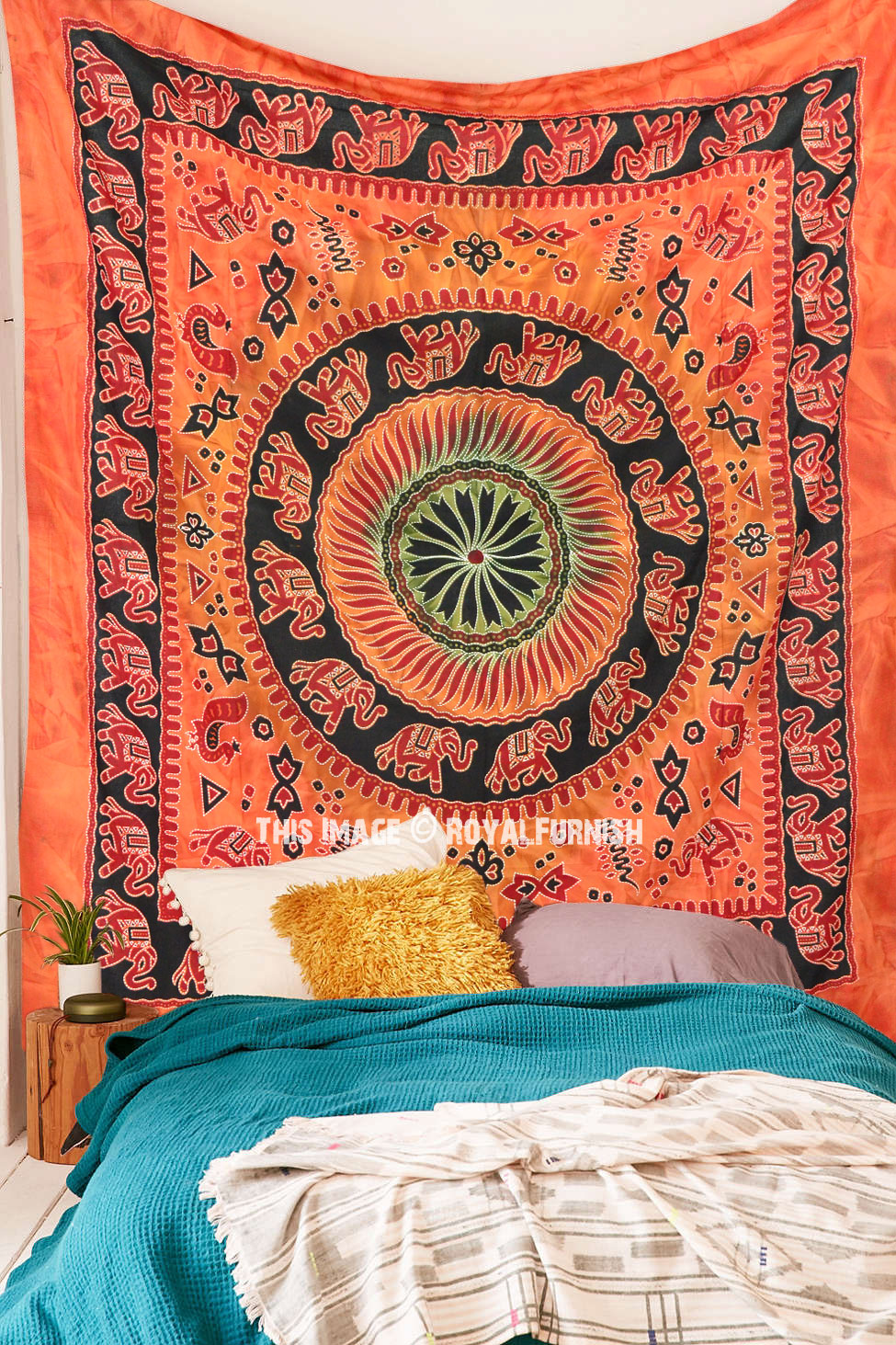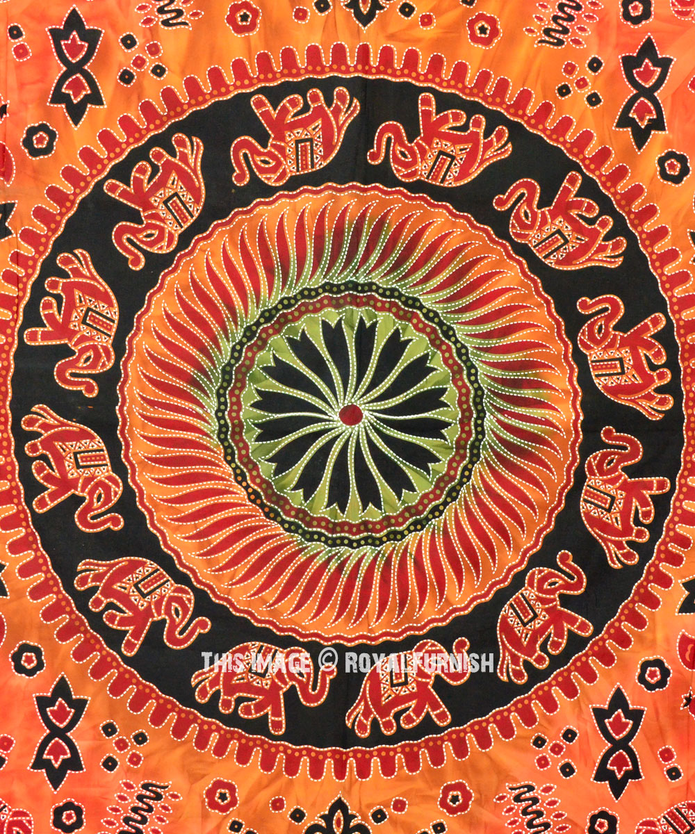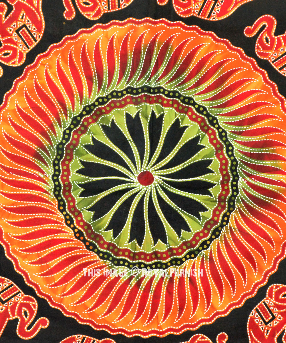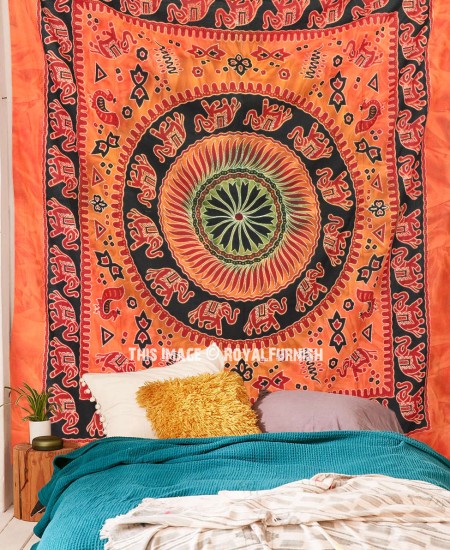 Tapestries are great idea to instant makeover to any room and remove dull ambiance and give revive look to the home interior. We've reached with distinctive, very reasonably priced asoortment of attractive frined cotton four elephant mandala wall tapestry which fits with any kind of budget, each beautifully constructed from 100% fine cotton in India. The tapestry is finished with bordered edges.