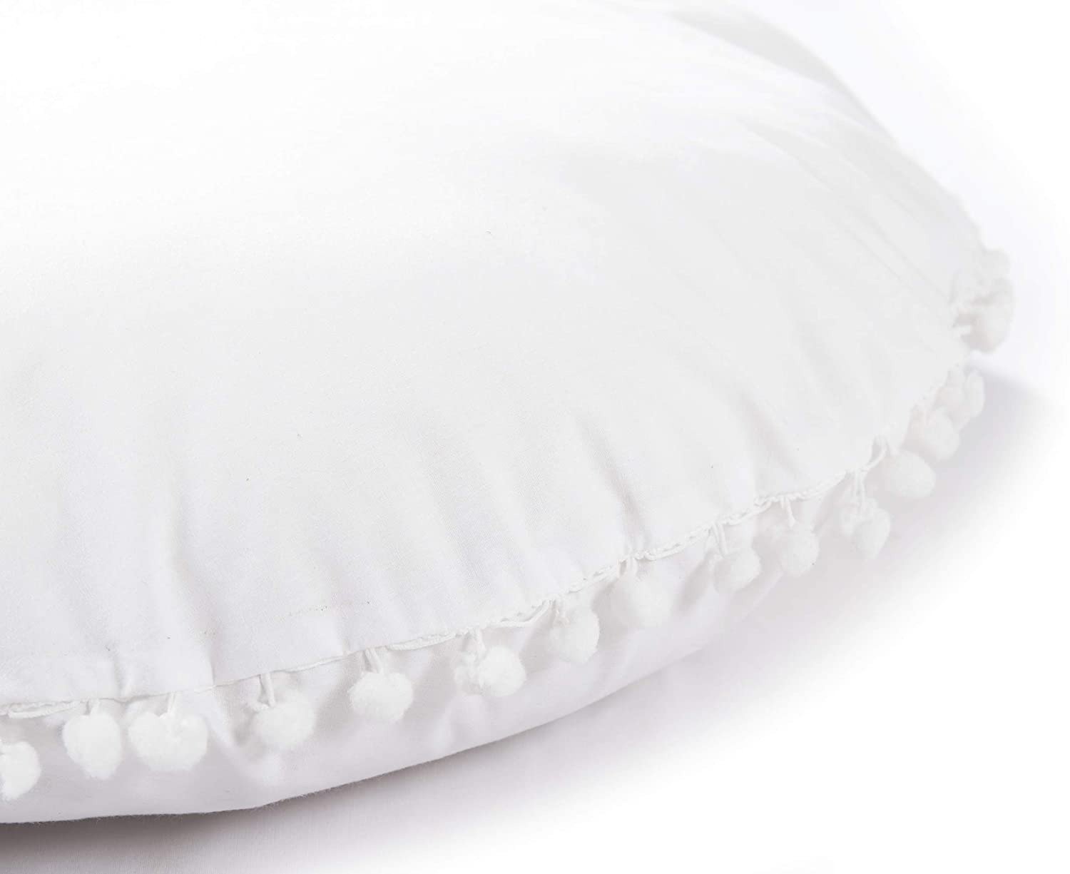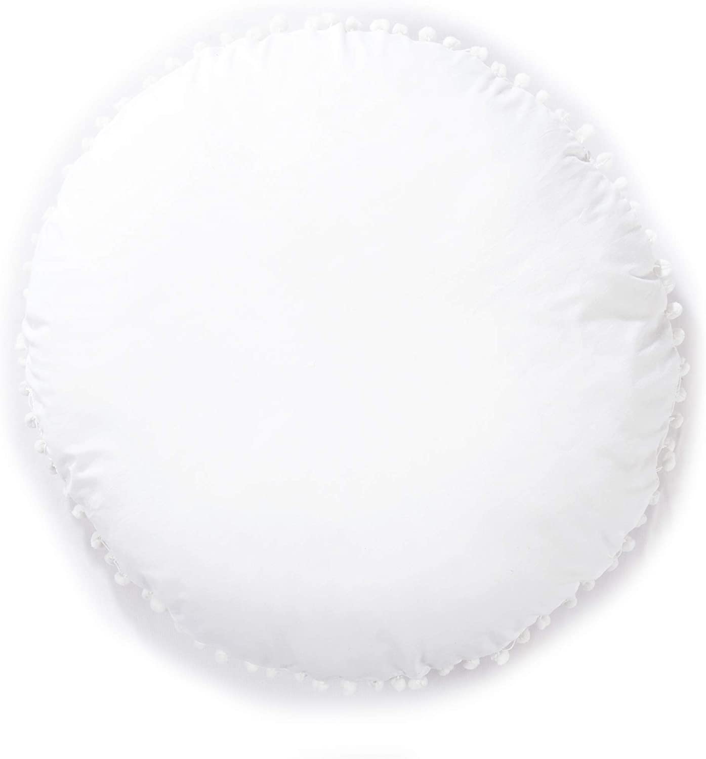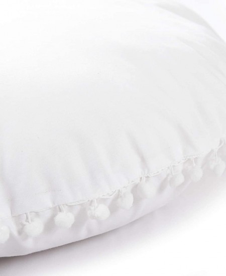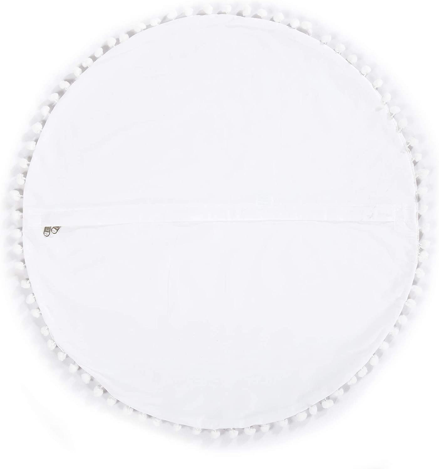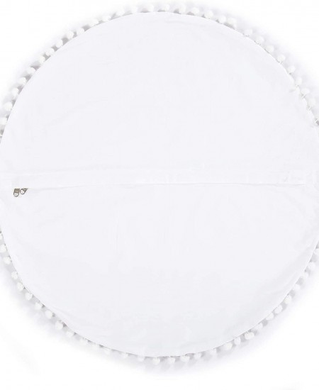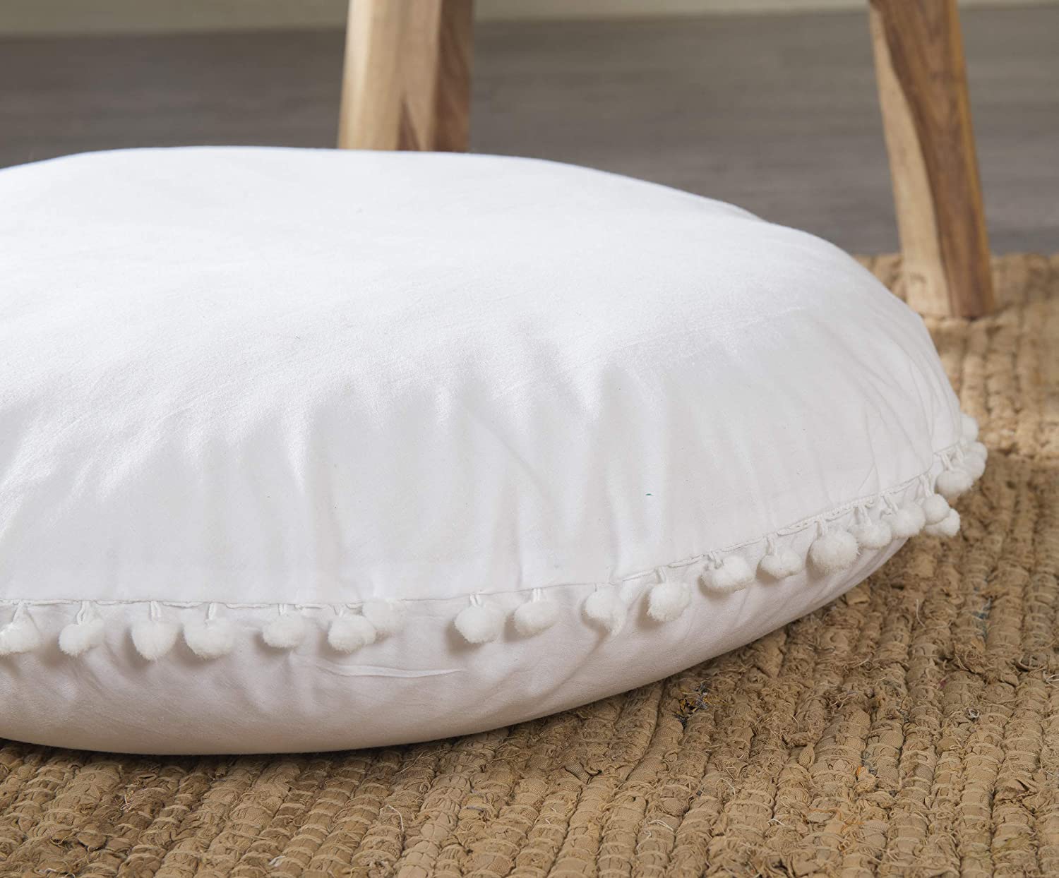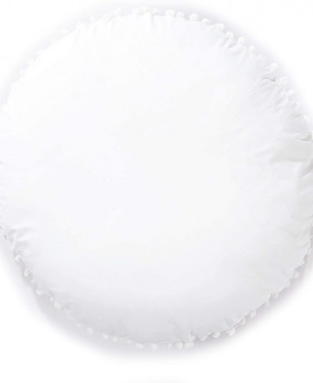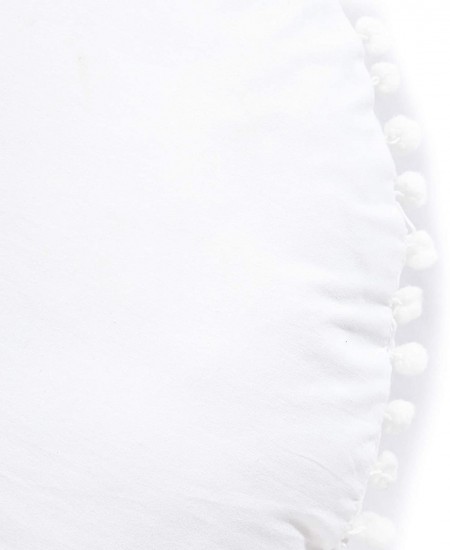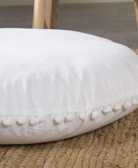 Oversized White Round Floor Pillow Cover with Pom Pom for Extra Sitting - 32 Inch