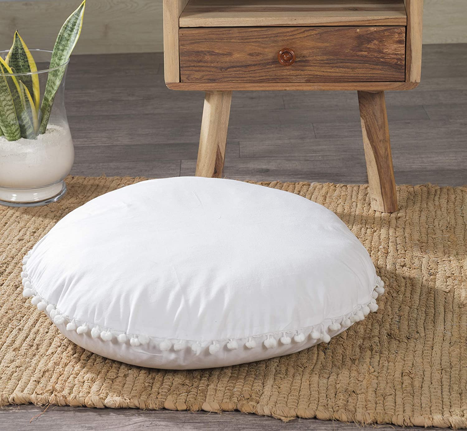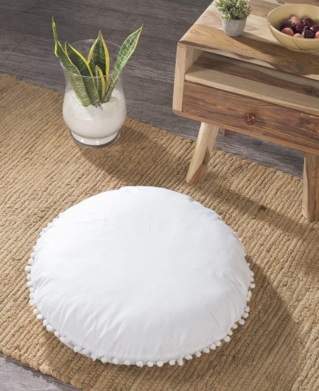 Create style and flair to any space with comfortable and soft cotton floor pillow cover. Made with 100% cotton, this round floor pillow cover offers comfy surface as well as designer look with pom pom that add rich and elegant to any space. This promotes to sit on while watching movie, gaming, meditation and yoga and perfect solution for extra sitting.