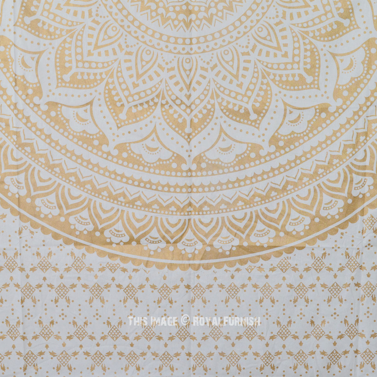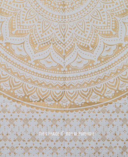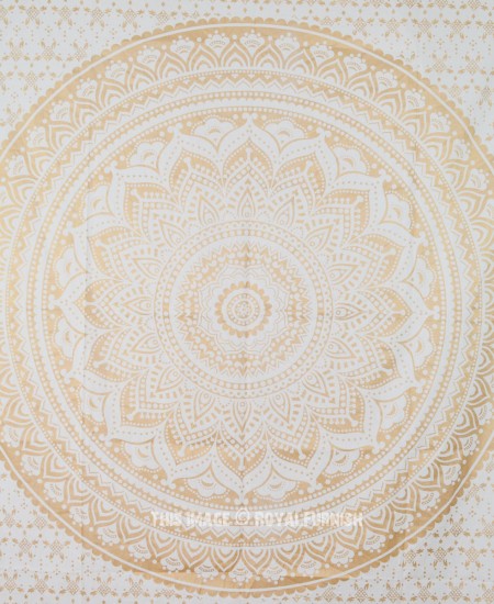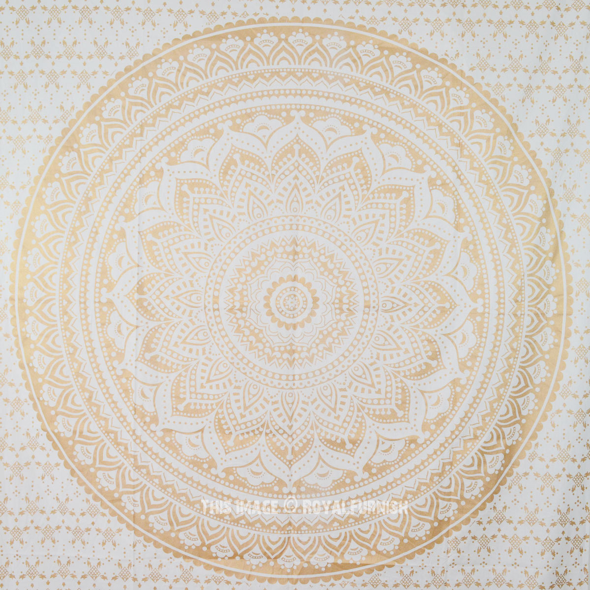 Extra Large Sparkly White-Gold Mandala Wall Tapestry - King Size
