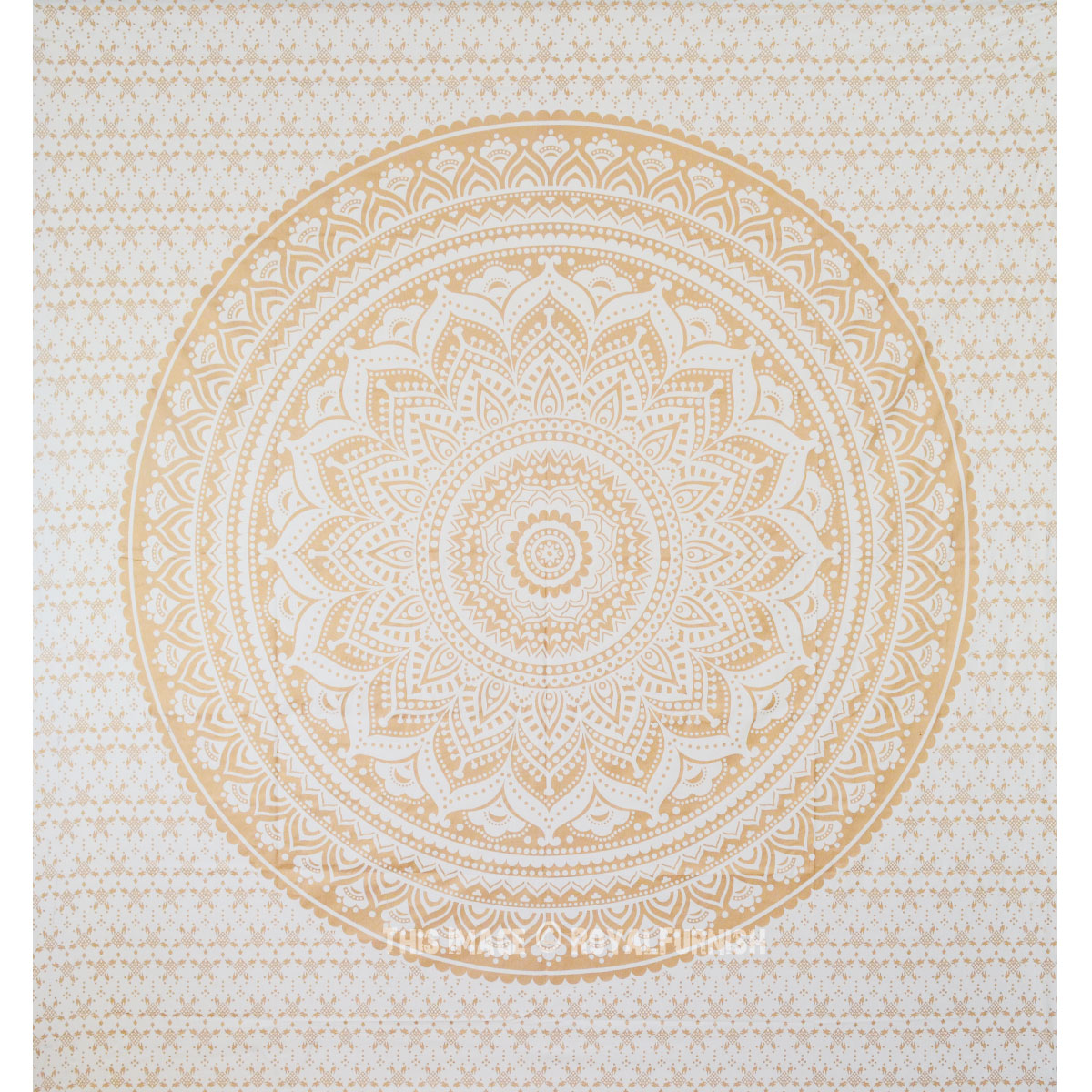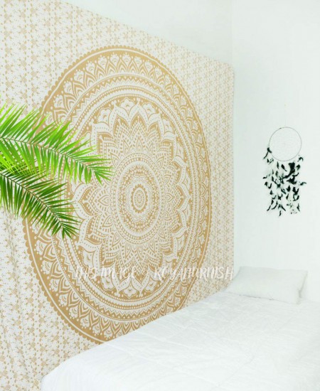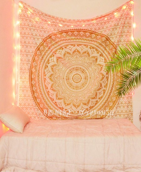 It's amazing how blank walls are transformed when almost anything is hung on them! They immediately burst to life, making a room feel homey and lived in rather than sterile and impersonal. Fill them with Golden floral ombre mandala wall tapestry bedding to turn empty walls into eye candy. It's an easy way to add instant comfort and revive your decor. It is beautifully constructed thin sheet from 100% fine cotton in India. It adds a colorful and unique touch to any space.